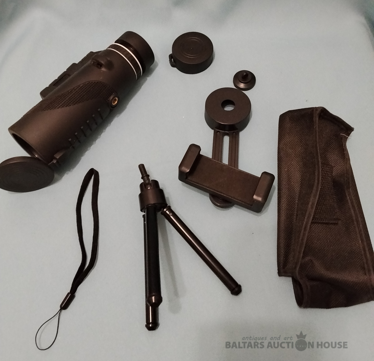 Binoklis ar maināmu palielinājumu , stativs , telefona turētājs bildēm tālumā, glabāšanas soma. Viss darba kārtībā.
