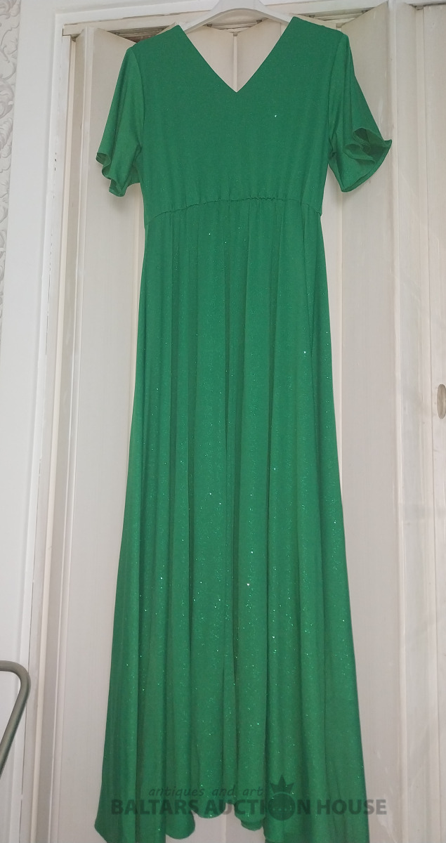 Spīdosa Kokteilkleita tumsi zalas krāsas. Jauna ar birku un originālu cenu. Atbilst L izmēram. Pirkta Dānijā 2025 gadā decembrī. Netīka lietota. Iepakojumā.