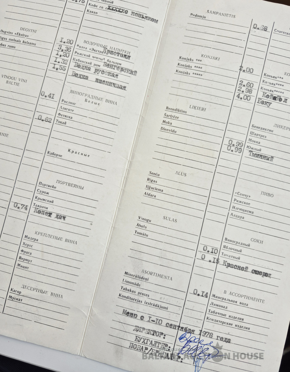 Ēdienkarte restorāna "Laiks".