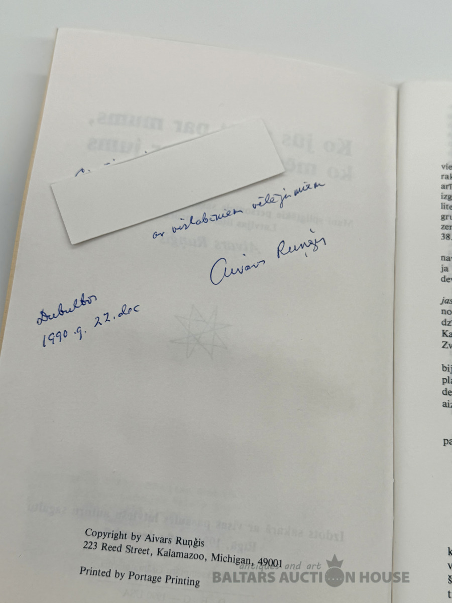 Ar autora ierakstu. Aivars Ruņģis. Trimdā ASV 1990. 75 lpp.