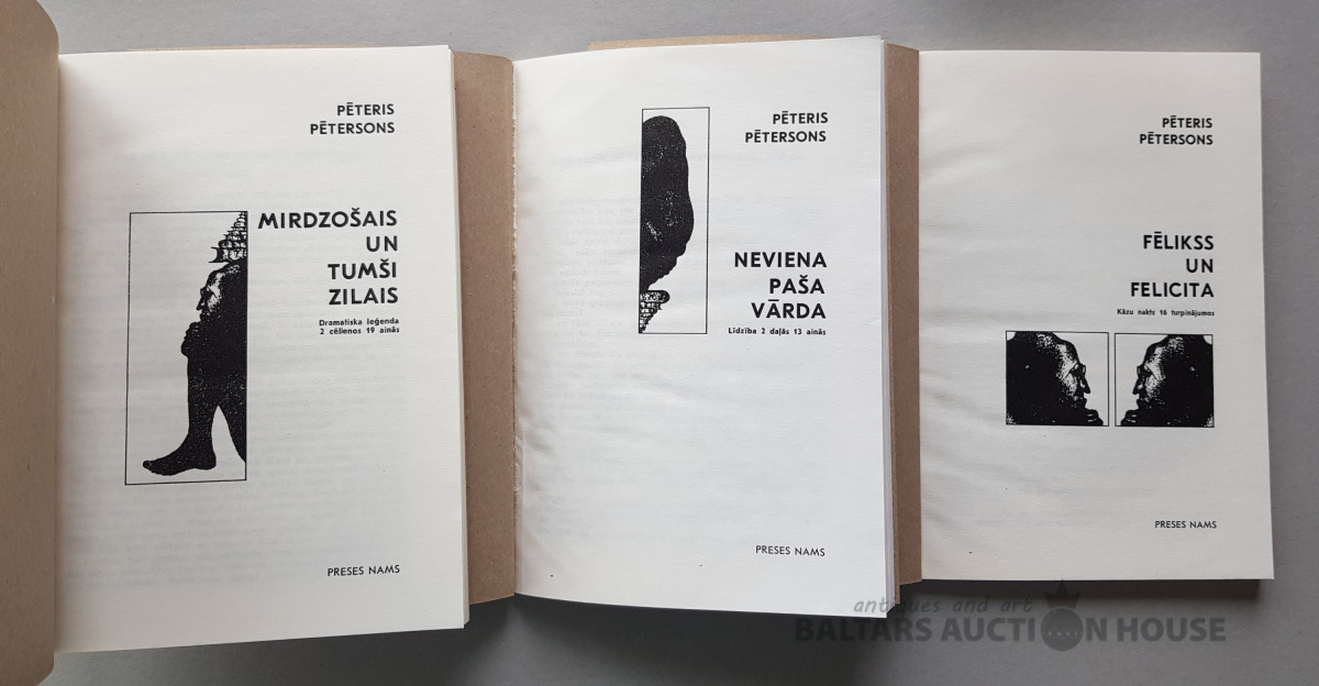 Pēteris Pētersons "3 lugu komplekts", Preses Nams, 1998, īpašā mapītē. Metiens 600 eks. Ilmāra Blumberga veidots ex libris.