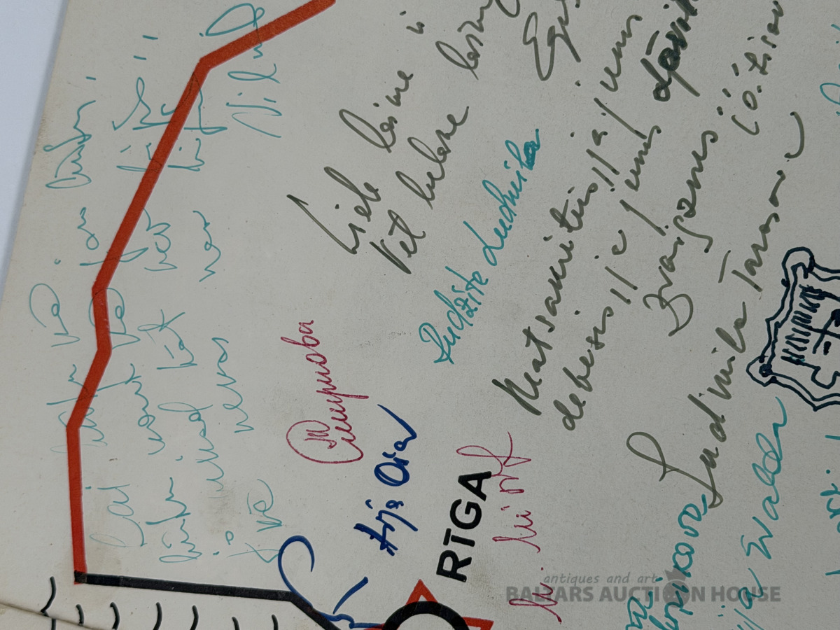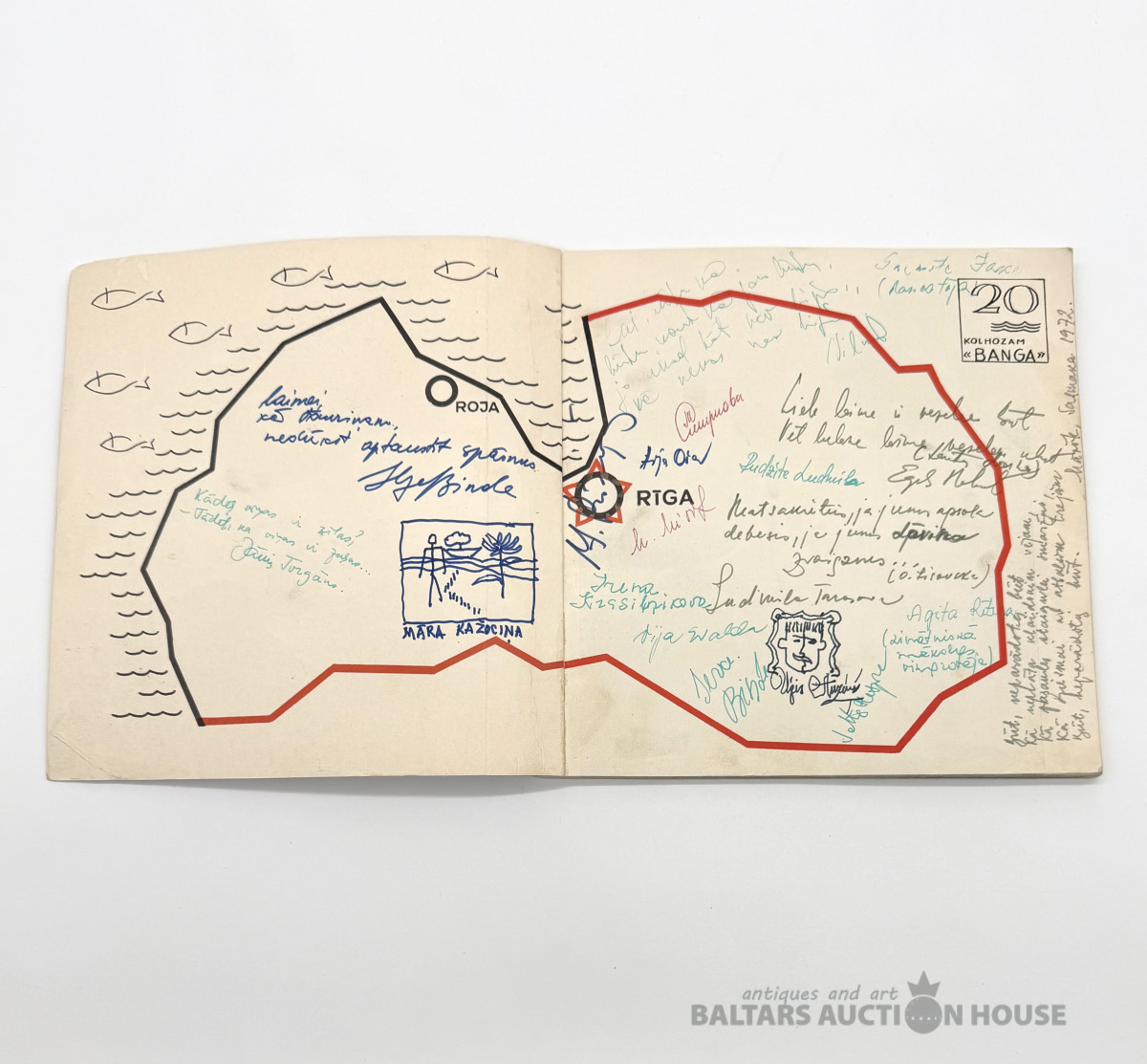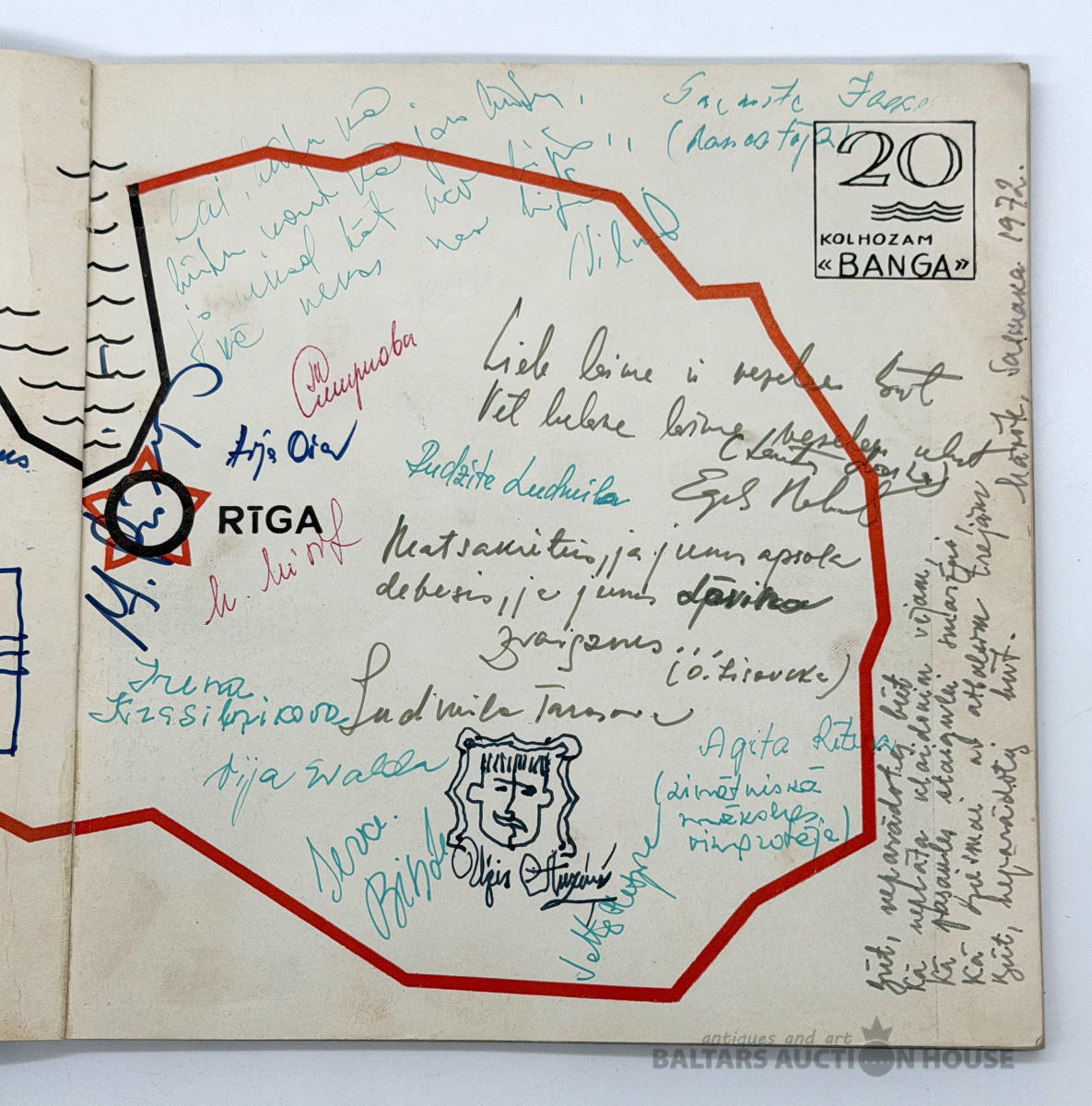 Autogrāfu kolekcionāriem. 1972 gada radošā plenēra dalībnieku paraksti. Uģis Auziņš, Māra Kažociņa, Ilze Binde, Aija Oša un citi.