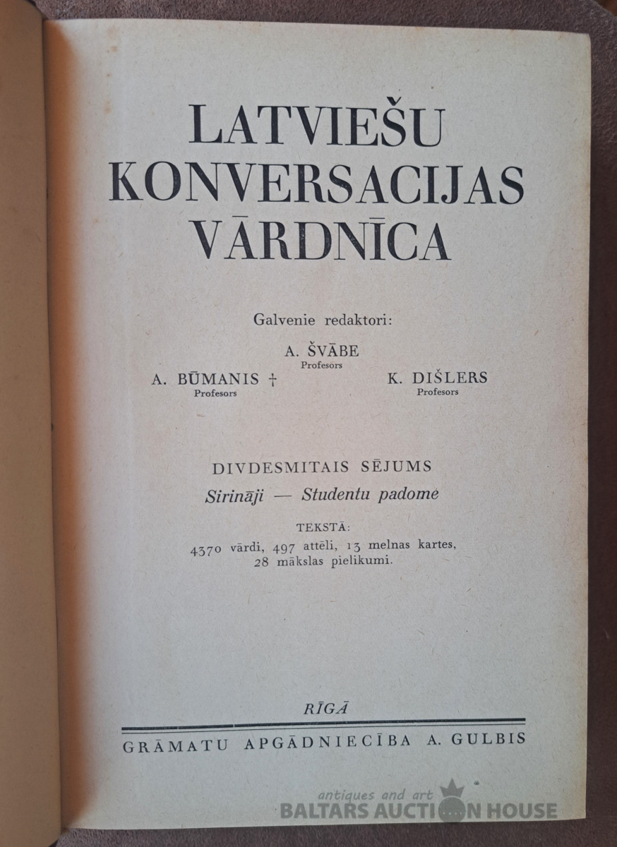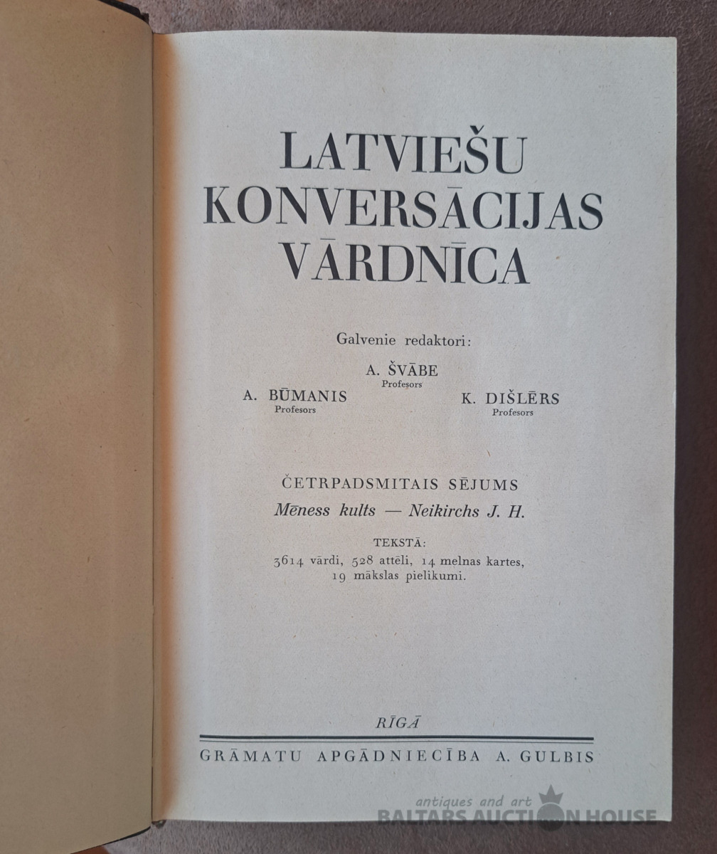 Latviešu konversācijas vārdnīca 14. sēj., Oriģinālajā pusādas iesējumā, labi saglabāta.