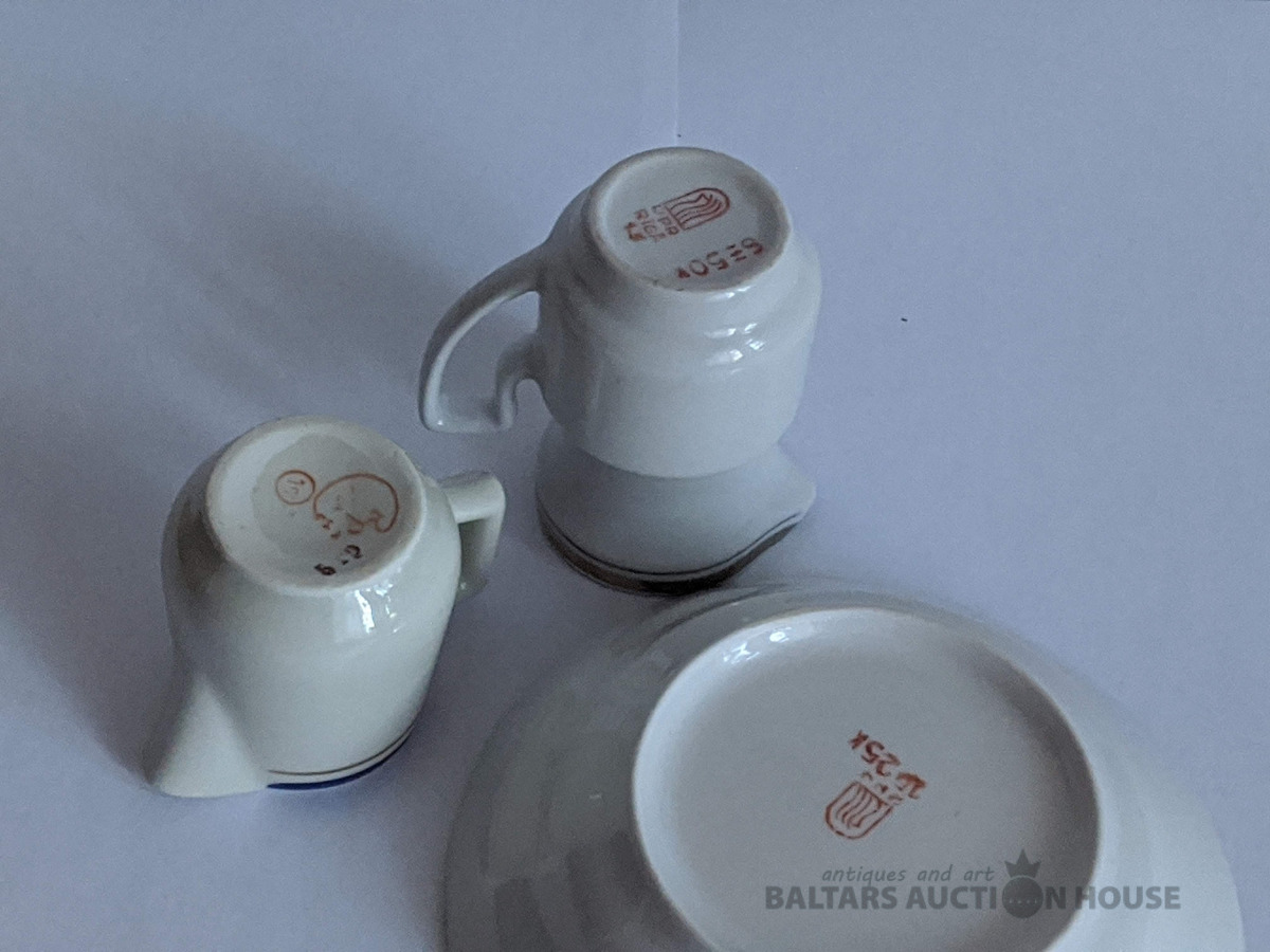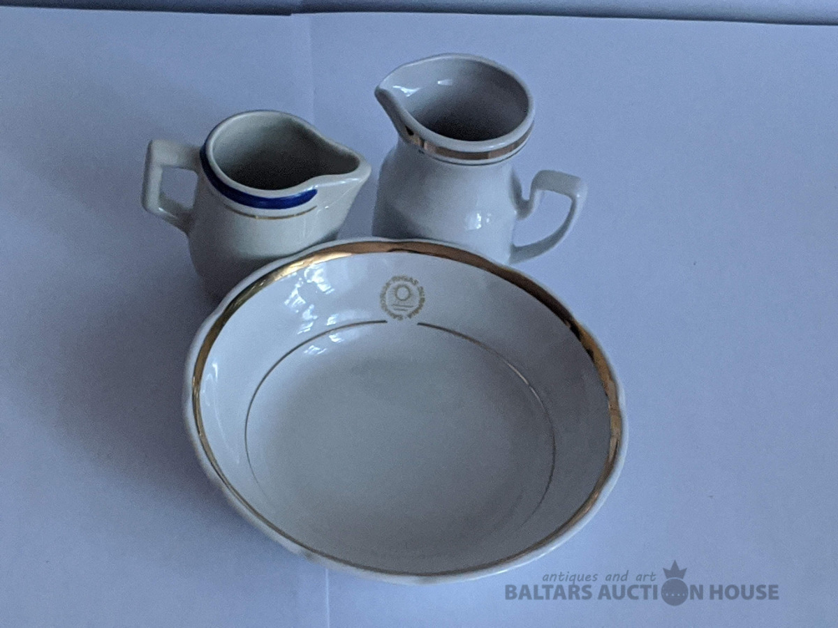 70-80-to gadu kafejnīcu trauki, vienas porcijas krejuma trauciņi un bļodiņa, ražoti Rigas porcelāna rūpnīcā