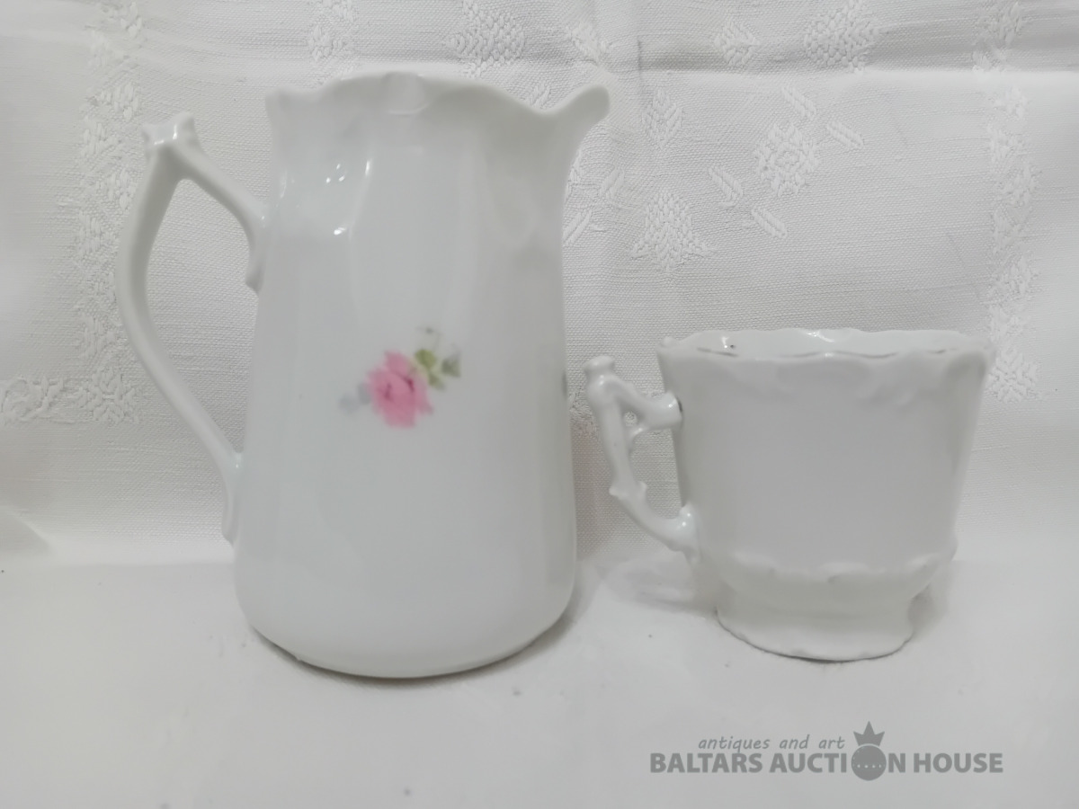 Cara laika piena kanniņa ar krūzīti, bez zīmogiem ( Vācija, Polija?)porcelāns,, Kannai, un kruzei atsitumi