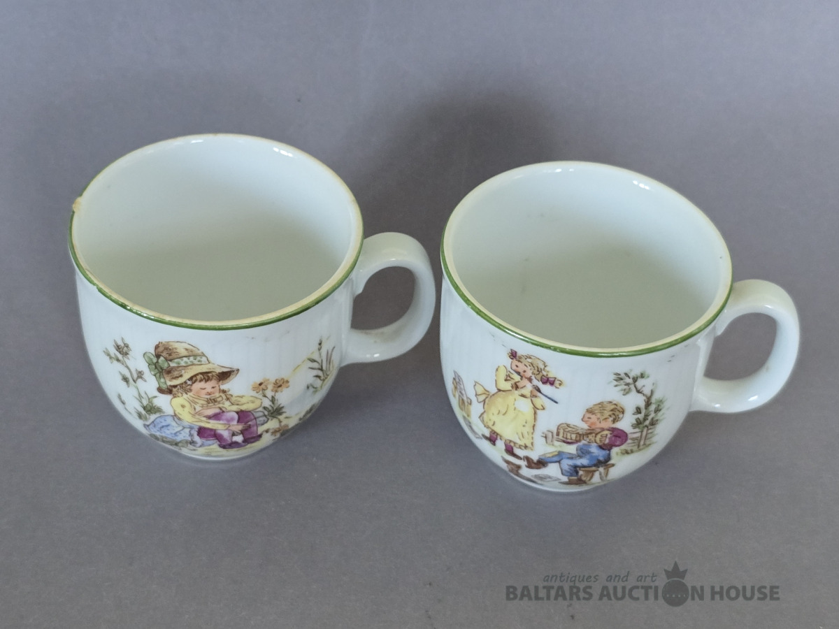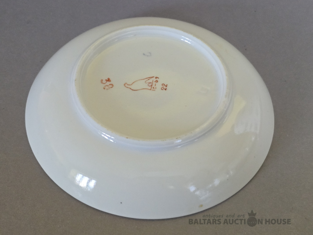 Porcelāna tasītes.Bèrnu trauki Rìgas porcelāna fabrika.20 gs.Roku gleznojums. (Vienai robiņš).