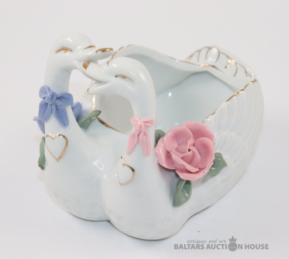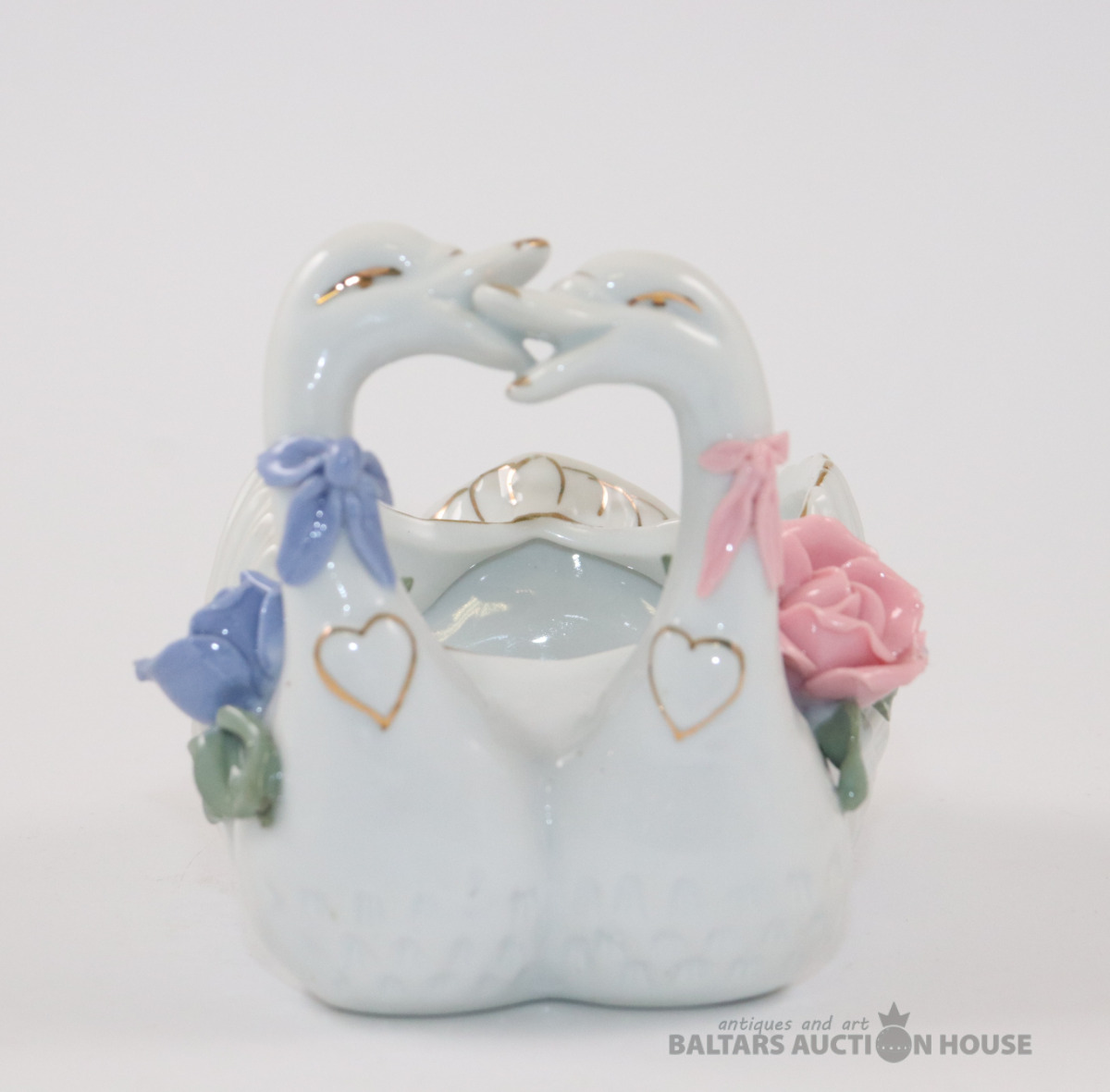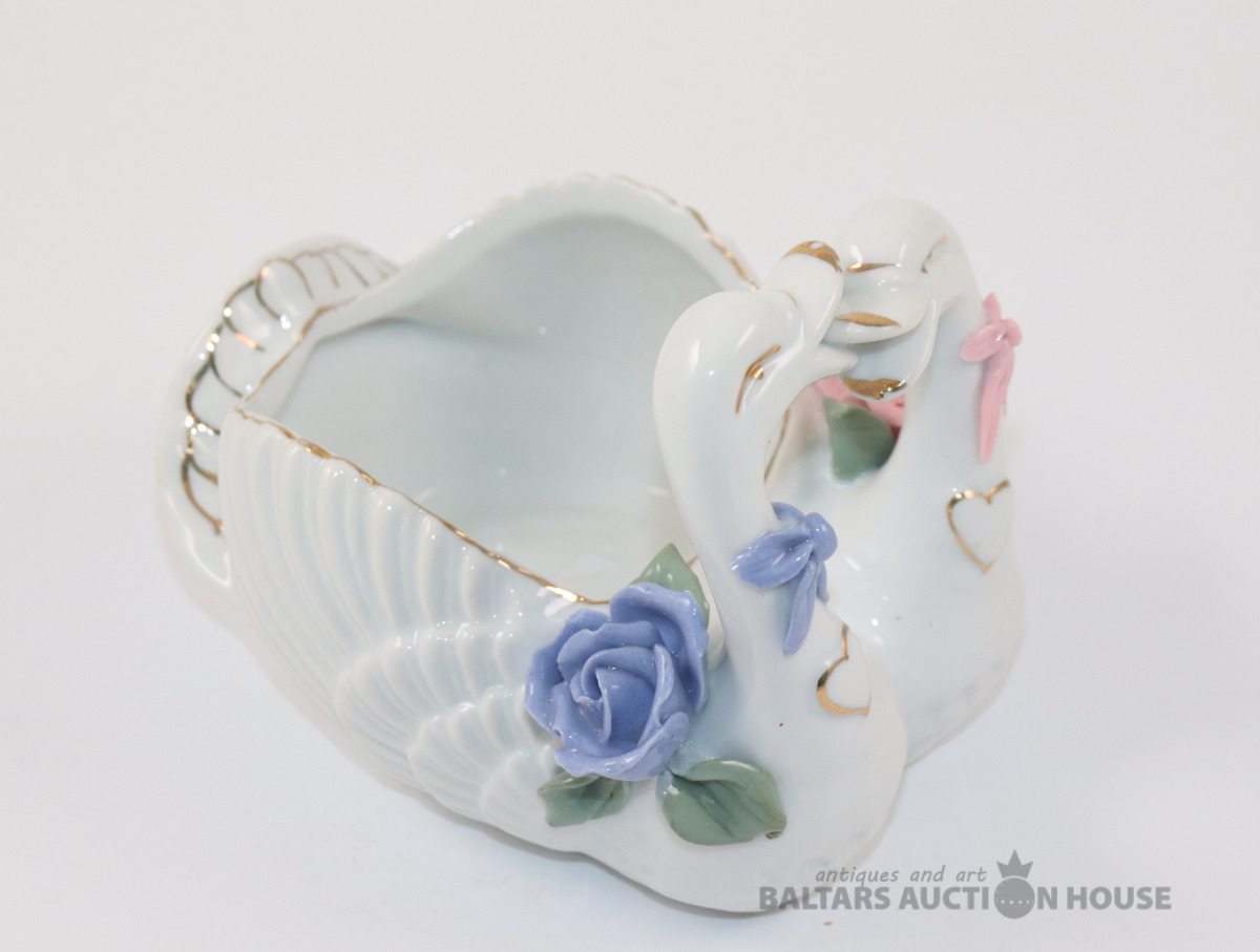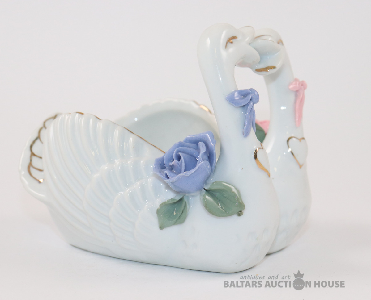 Porcelāna gulbja figūriņa - vazīte | Gulbju pāris | Ziedu rotājumi | Vintāžas. 9,5x9,5x12 cm