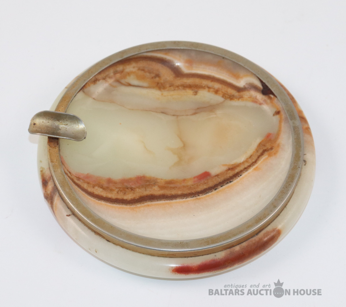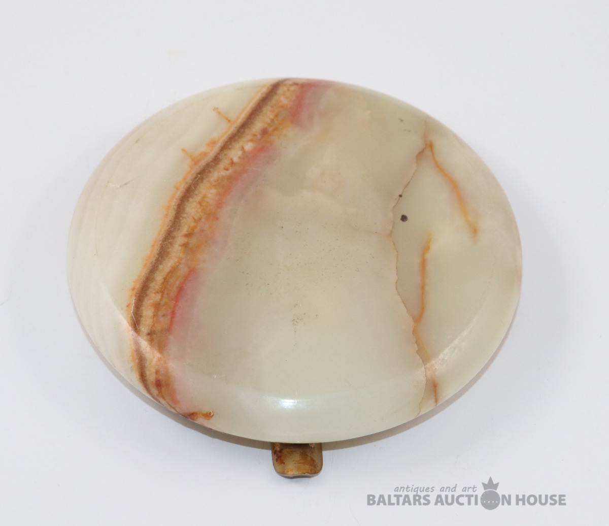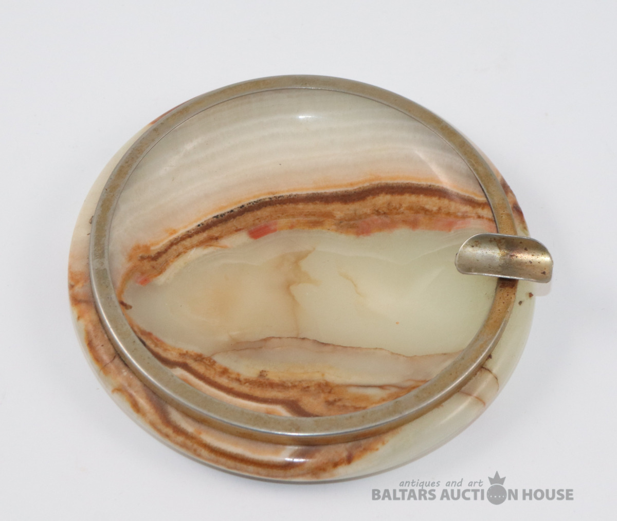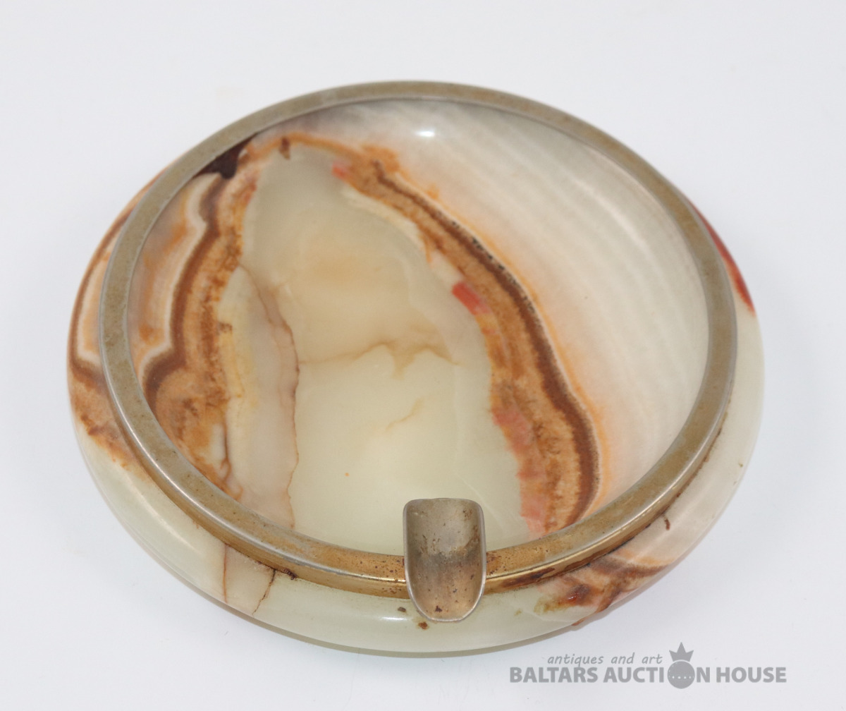Pelnu trauks Art Deco stila, kas izgatavots no oniksa un misiņa. d=13,5 cm