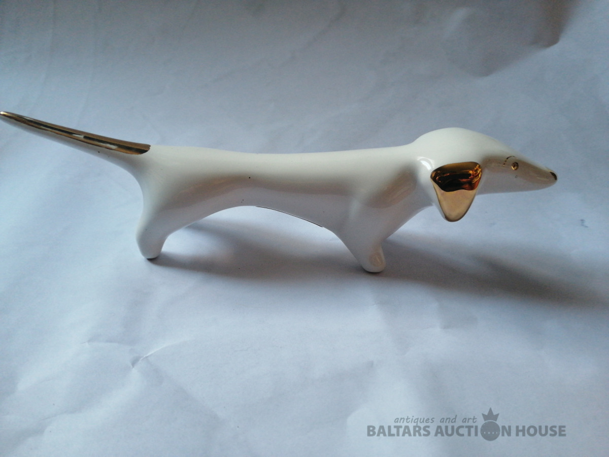 Figūriņa "Taksis", porcelāns, zeltījums, garums 25 cm, augstums 5,5 cm, roku darbs, Itālija