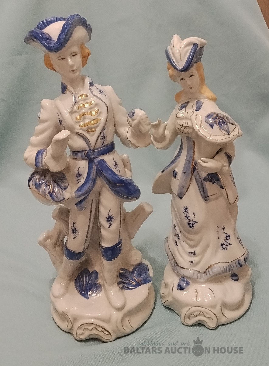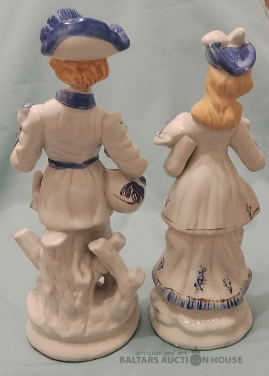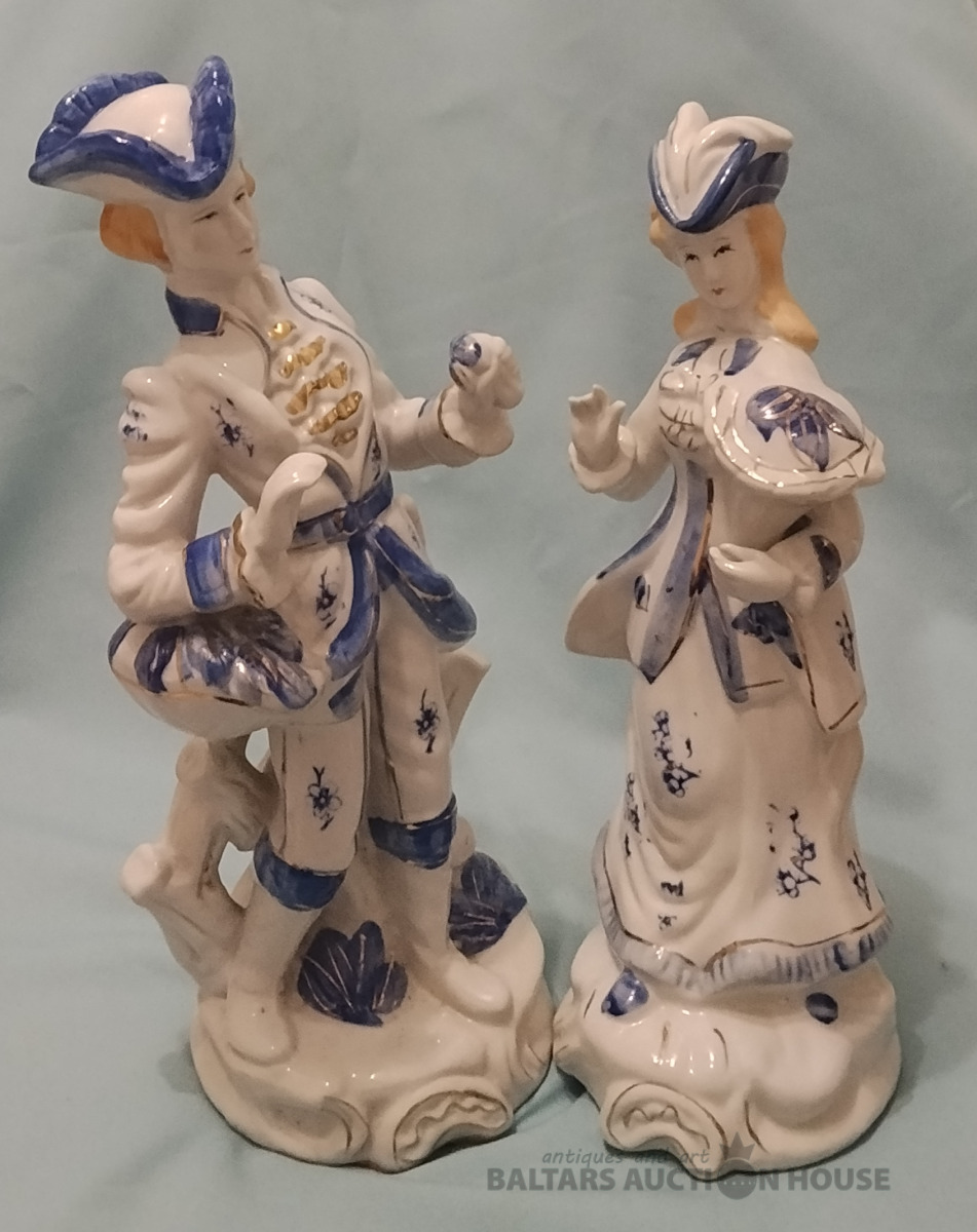 Garas porcelāna figūras. Vīrietis H 28 cm. Sievietei H 26 cm.