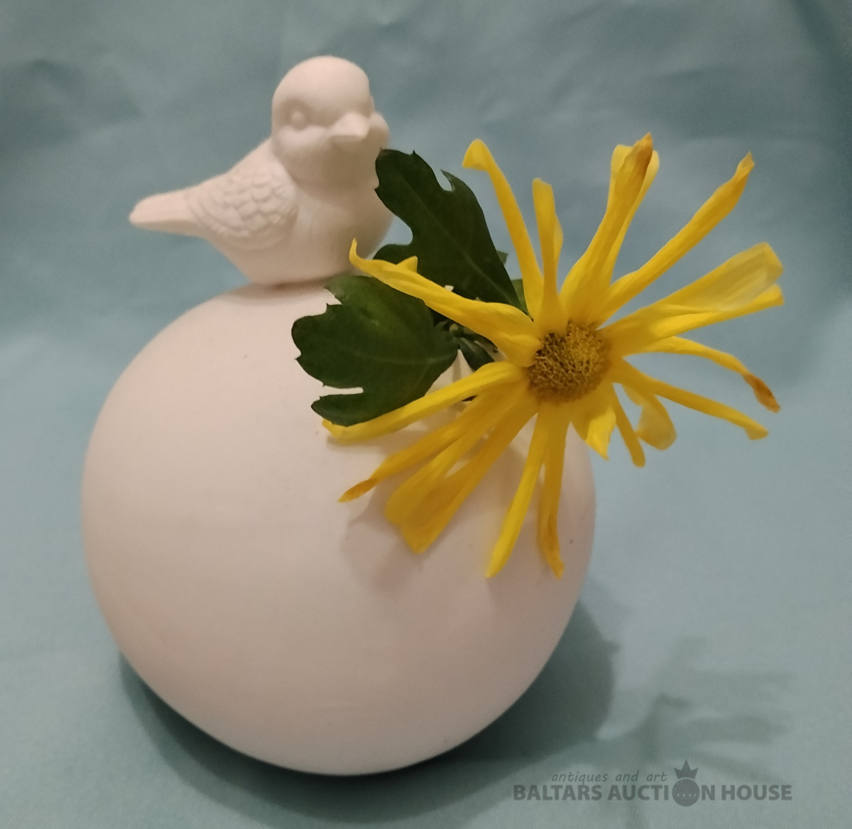 Porcelāna vāze ar putniñu. H 16 cm.
