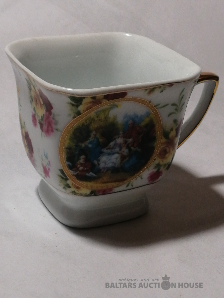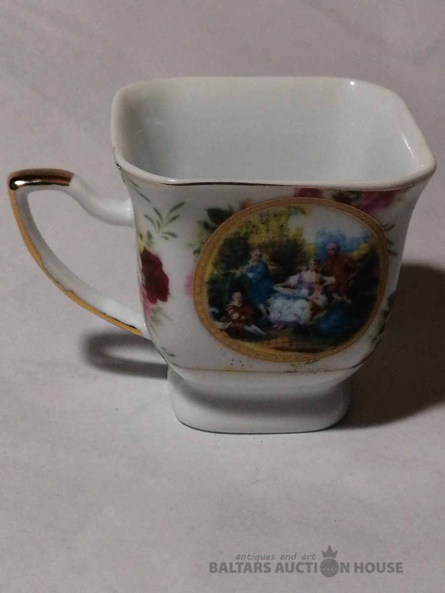 Četrstūraina krūzīte, porcelāns, zeltījums, augstums 7,5 cm, nelietota