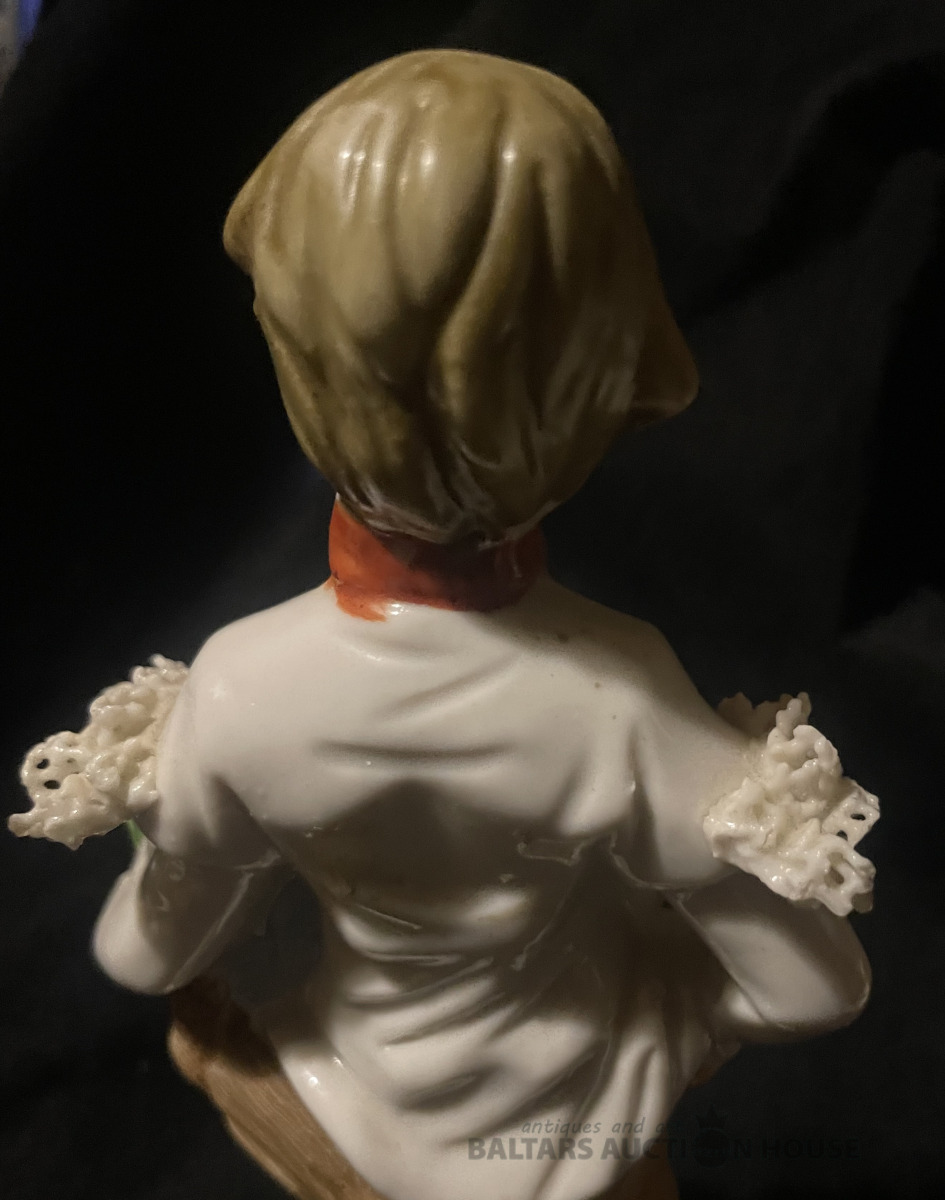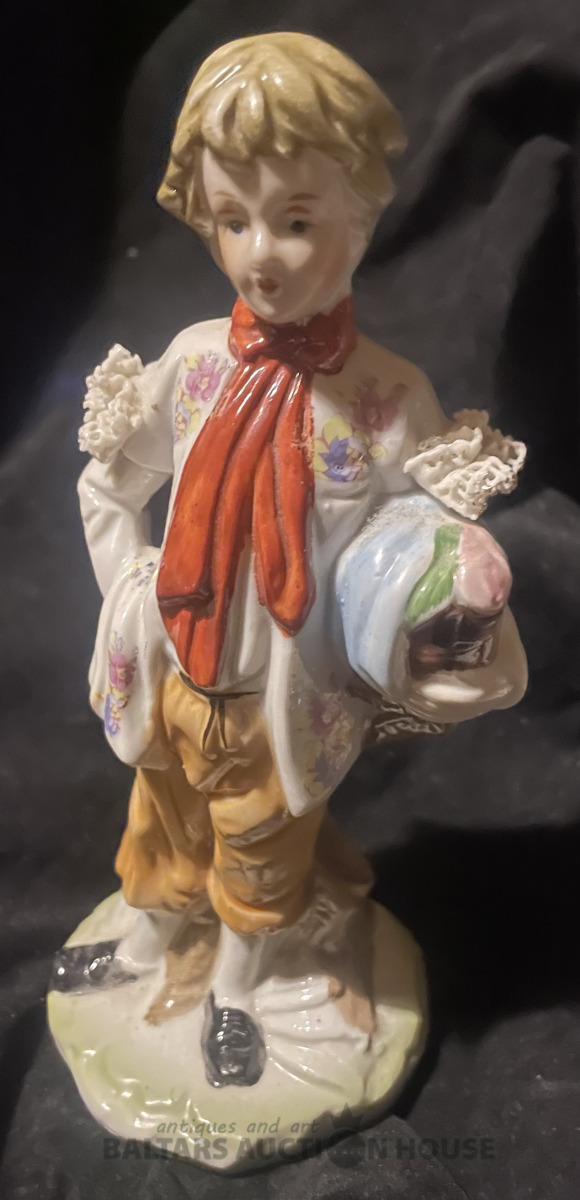 Figūriņa JAUNEKLIS GREZNĀ TĒRPĀ, porcelāns, roku gleznojums, h=17 cm, Vācija ?, defekti mežģīnēm abās pusēs