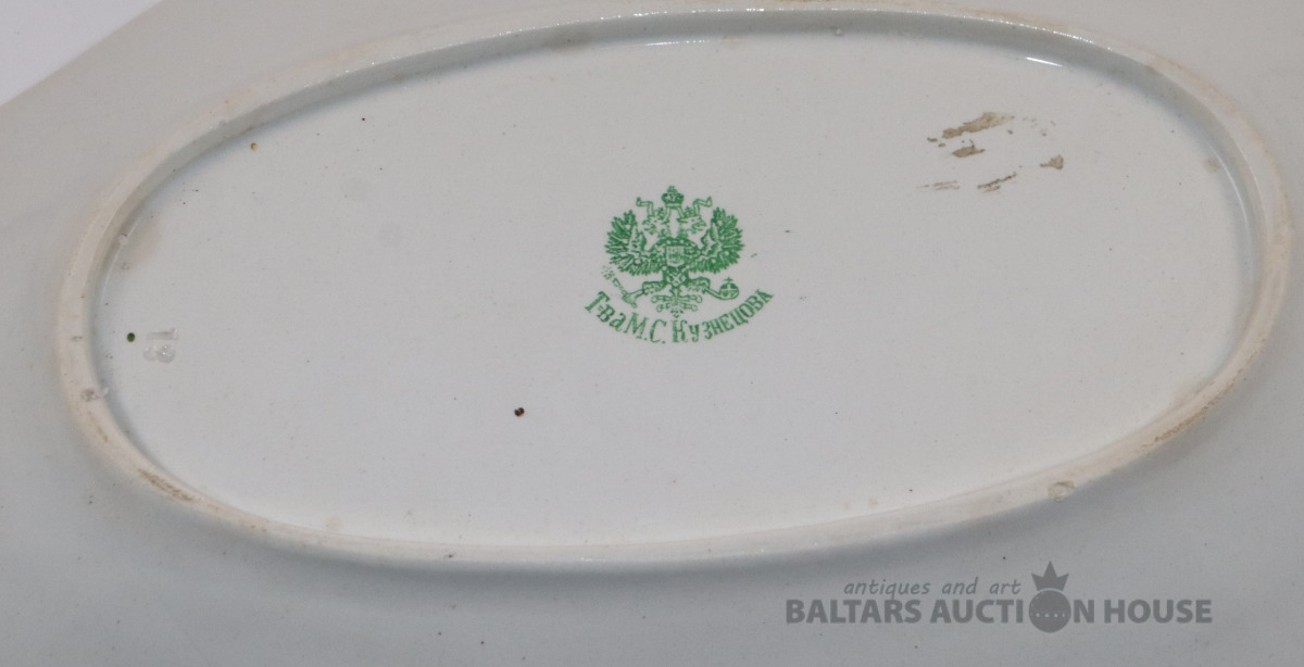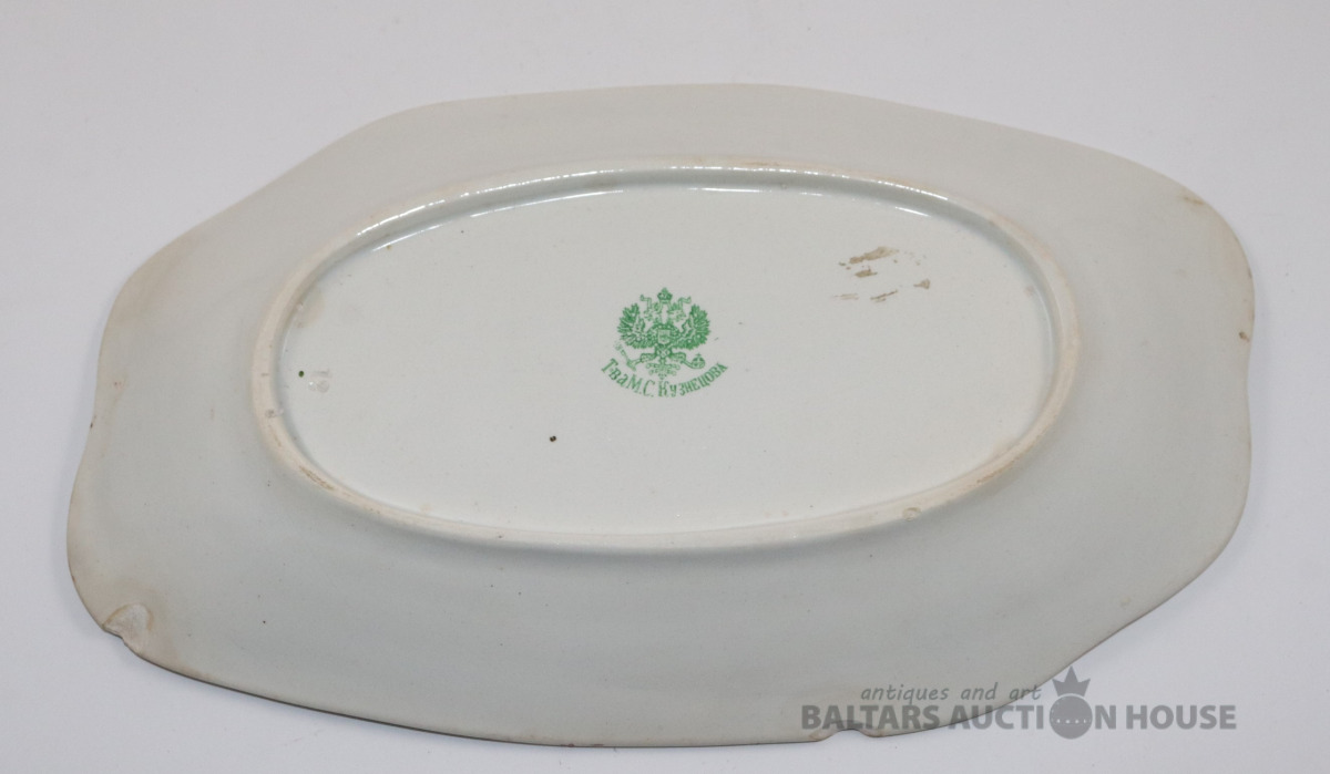 Šķīvis. Porcelāns, Kuzņecova farika. 29,5x45. Noberzums malai apakšā.
