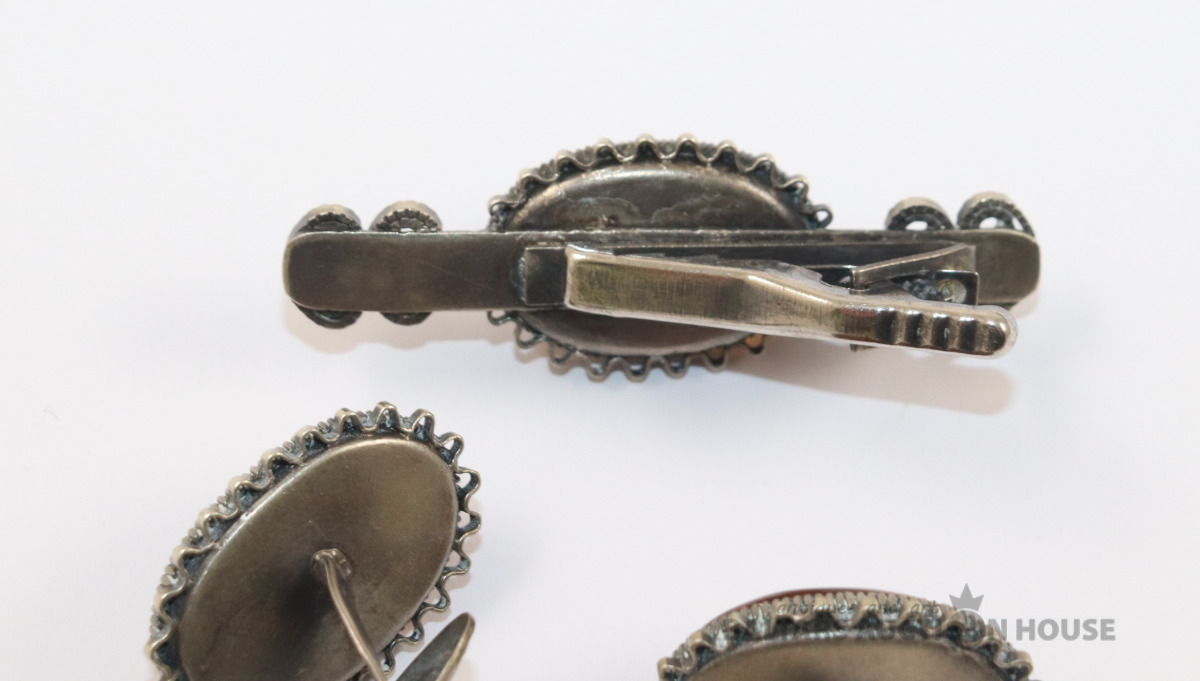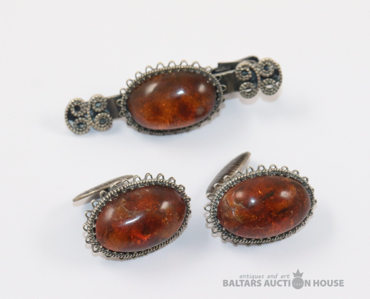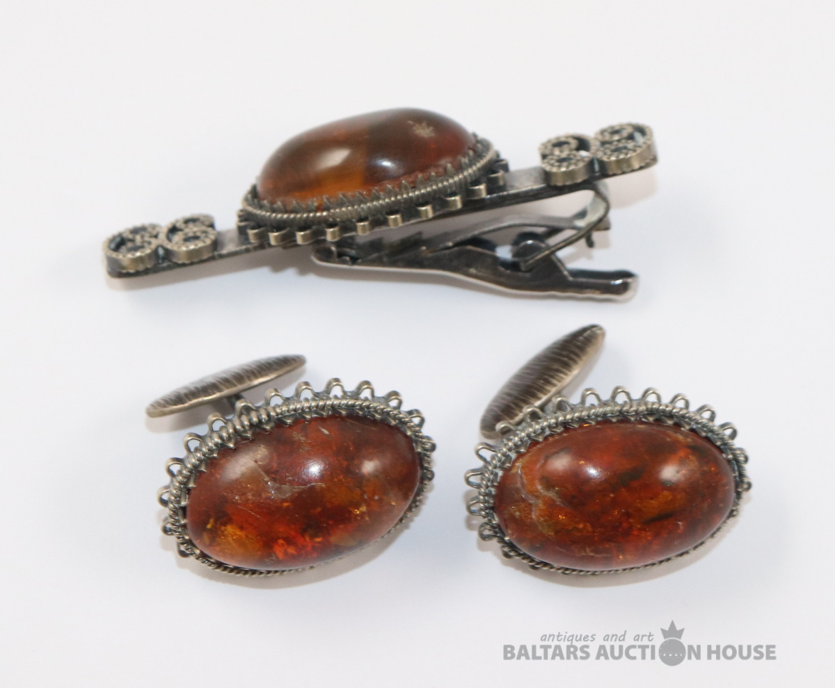 Aproču pogas ar kaklasaites sprāzdi. Dzintars, metāls.