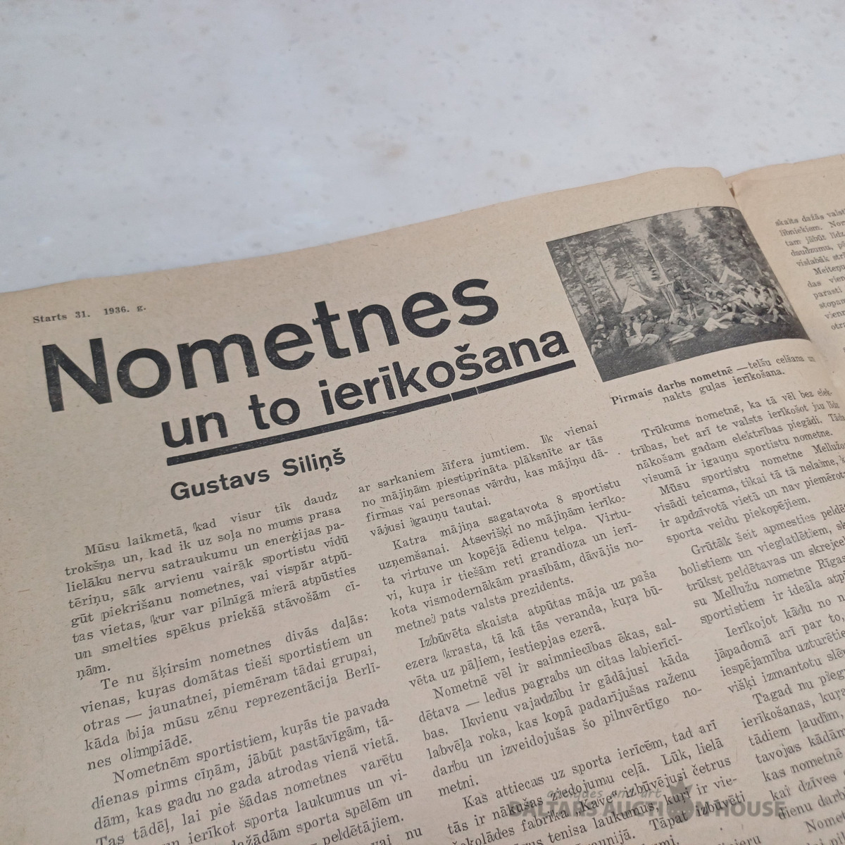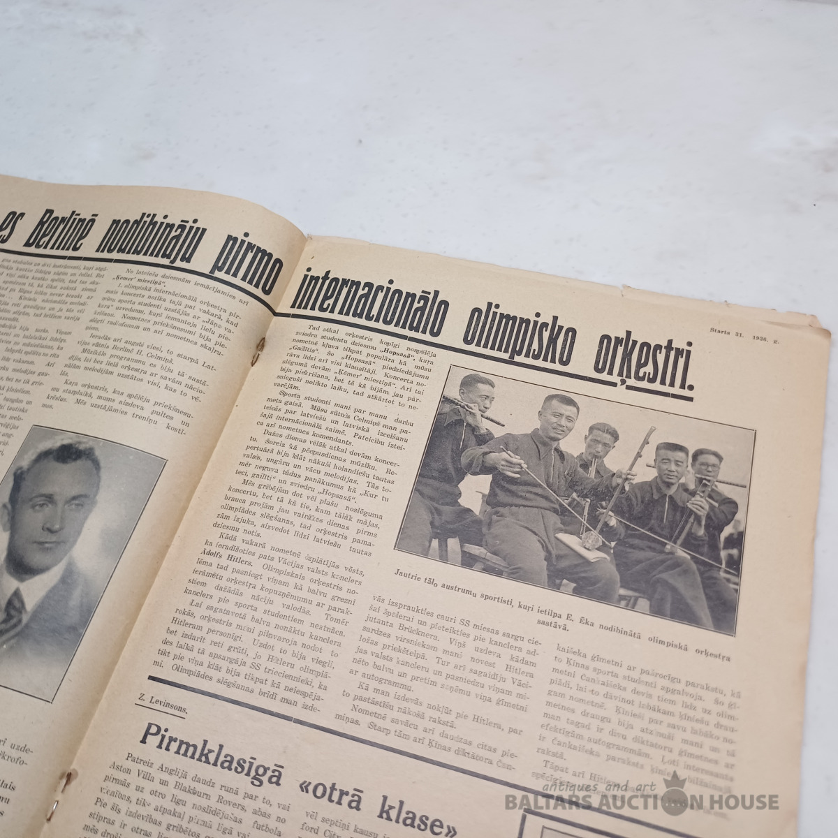 Starts 1936/31 – Reti sastopams sporta žurnāls. Berlīnes olimpiādes (nacistu Vācijas) gada olimipādes gads. Saturā foto ar sportu pasaulē un Latvijā. Ieskatu skatīt bildēs