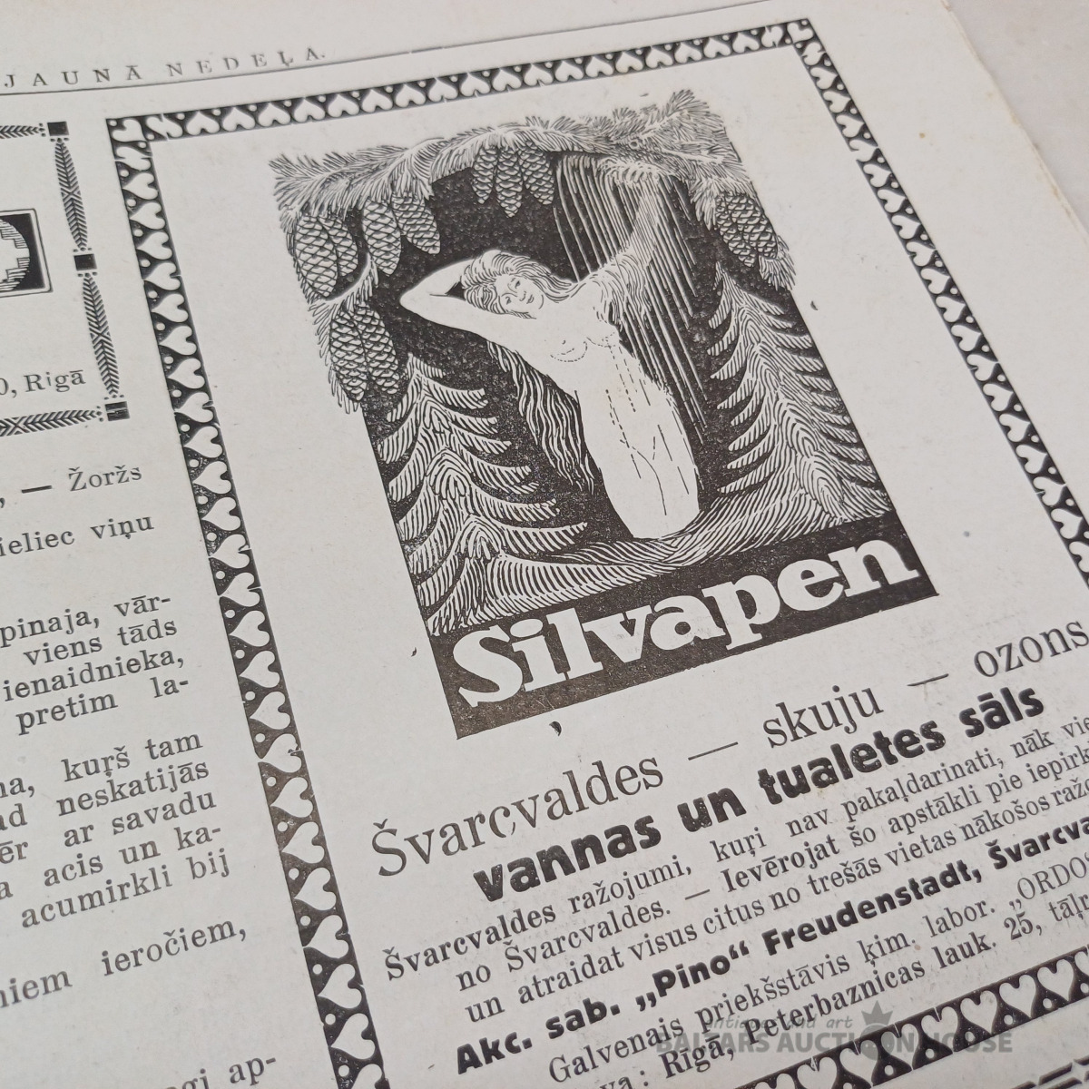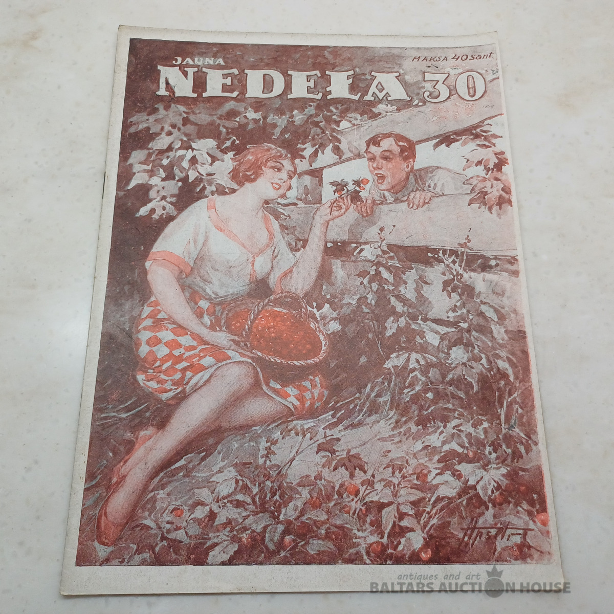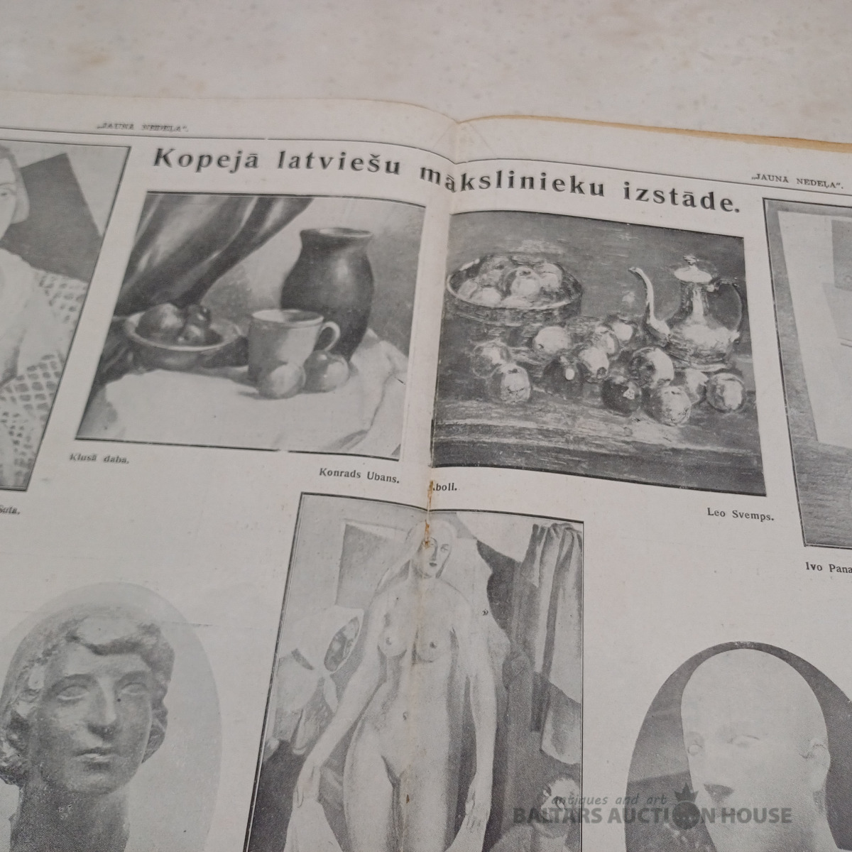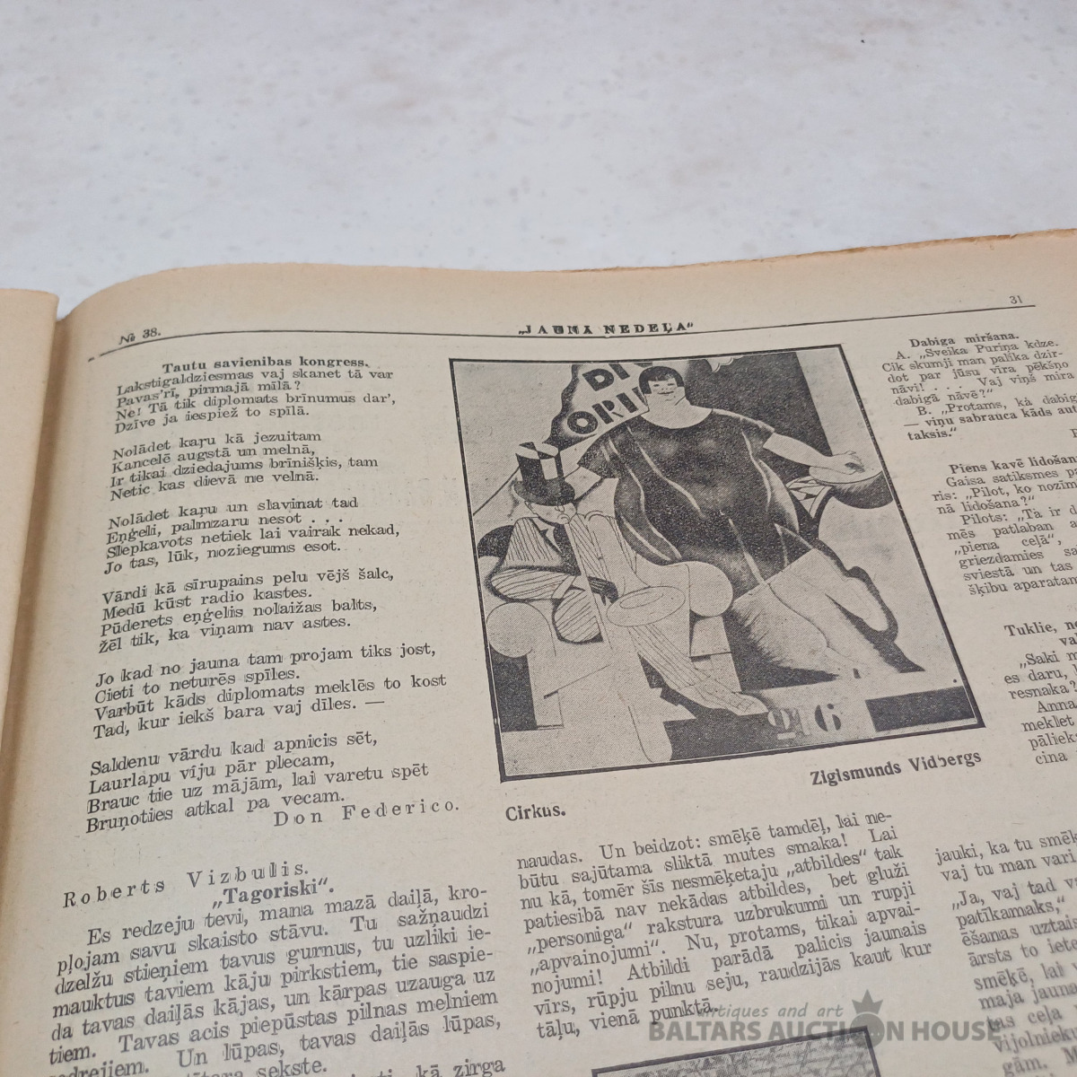 Jaunā NEDĒĻA 1927/19 –Vaku zīm. Strunke. Rūpniecība Latvijā. Daudz Latvijas sadzīves foto. Mūsu mākslinieki Itālijā foto. Oto Skulmes erotiska rakstura ilustrācija uz aizmug. vāka. Ieskatu skatīt bildēs