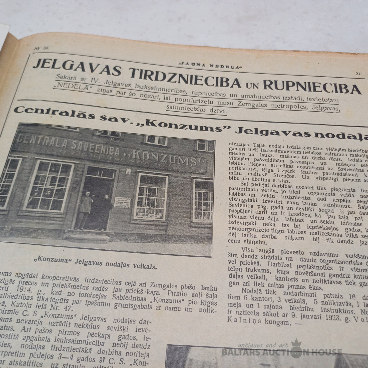 Jaunā NEDĒĻA 1927/38 –Vaku zīm. Krūka. JELGAVAS numurs. Daudz Jelgavas vietas un sadzīves foto. Ieskatu skatīt bildēs