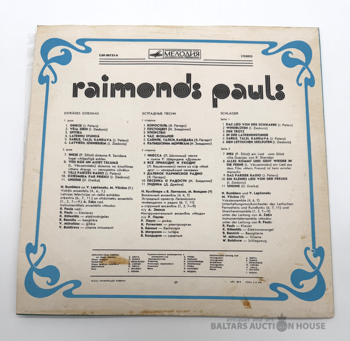68. MĀKSLAS DARBU IZSOLE NO 20. - 24. FEBRUĀRIM 20.02.2026 67. MĀKSLAS DARBU IZSOLE NO 23. - 27. JANVĀRIM 23.01.2026 66. MĀKSLAS DARBU IZSOLE NO 12. - 16. DECEMBRIM 12.12.2025 65. MĀKSLAS DARBU IZSOLE NO 7. - 11. NOVEMBRIM 07.11.2025 Tests 30.10.2025 64. MĀKSLAS DARBU IZSOLE NO 10. - 14. OKTOBRIM 10.10.2025 63. MĀKSLAS DARBU IZSOLE NO 12. - 16. SEPTEMBRIM 12.09.2025 62. MĀKSLAS DARBU IZSOLE NO 8. - 12. AUGUSTAM 08.08.2025 61. MĀKSLAS DARBU IZSOLE NO 7. - 10. JŪLIJAM 07.07.2025 60. MĀKSLAS DARBU IZSOLE NO 23. - 27. MAIJAM 23.05.2025 59. MĀKSLAS DARBU IZSOLE NO 25. - 29. APRĪLIM 25.04.2025 58. MĀKSLAS DARBU IZSOLE NO 21. - 25. MARTAM 21.03.2025 576. MĀKSLAS DARBU IZSOLE NO 21. - 25. FEBRUĀRIS 21.02.2025 56. MĀKSLAS DARBU IZSOLE NO 24. JANVĀRA - 28. JANVĀRIM 24.01.2025 55. MĀKSLAS DARBU IZSOLE NO 6. DECEMBRA - 10. DECEMBRIM 06.12.2024 54. MĀKSLAS DARBU IZSOLE NO 25. OKTOBRA - 29. OKTOBRIM 25.10.2024 53. MĀKSLAS DARBU IZSOLE NO 6. SEPTEMBRA - 10. SEPTEMBRIM. 06.09.2024 52. MĀKSLAS DARBU IZSOLE NO 26. JŪLIJA - 30. JŪLIJAM. 26.07.2024 51. MĀKSLAS DARBU IZSOLE NO 14. JŪNIJA - 18. JŪNIJAM. 14.06.2024 50. MĀKSLAS DARBU IZSOLE NO 10. MAIJA - 14. MAIJAM. 10.05.2024 49. MĀKSLAS DARBU IZSOLE NO 12. APRĪĻA - 16. APRĪLIM. 12.04.2024 48. MĀKSLAS DARBU IZSOLE NO 22. MARTA - 26. MARTAM. 22.03.2024 47. MĀKSLAS DARBU IZSOLE NO 23. FEBRUĀRA - 27. FEBRUĀRIM 23.02.2024 46. MĀKSLAS DARBU IZSOLE NO 26. JANVĀRA - 30. JANVĀRIM 26.01.2024 45. MĀKSLAS DARBU IZSOLE NO 15. DECEMBRA - 18. DECEMBRIM 15.12.2023 44. MĀKSLAS DARBU IZSOLE NO 24.NOVEMBRA - 28. NOVEMBRIM 24.11.2023 43. MĀKSLAS DARBU IZSOLE NO 20.OKTOBRA - 24. OKTOBRIM 20.10.2023 42. MĀKSLAS DARBU IZSOLE NO 22.SEPTEMBRĪ - 26. SEPTEMBRIM. 22.09.2023 41. MĀKSLAS DARBU IZSOLE NO 25.AUGUSTA - 29. AUGUSTAM. 25.08.2023 40. MĀKSLAS DARBU IZSOLE NO 21. JŪLIJĀ - 25. JŪLIJAM 21.07.2023 39. MĀKSLAS DARBU IZSOLE NO 9. JŪNIJA - 13. JŪNIJAM. 09.06.2023 38. MĀKSLAS DARBU IZSOLE NO 12. MAIJA - 16. MAIJAM 12.05.2023 07.04.2023 36. MĀKSLAS DARBU IZSOLE NO 17. FEBRUĀRA - 21. FEBRUĀRIM 17.02.2023 35. MĀKSLAS DARBU IZSOLE NO 13. JANVĀRA - 17. JANVĀRIM 13.01.2023 34. MĀKSLAS DARBU IZSOLE NO 25. NOVEMBRA - 29. NOVEMBRIM 25.11.2022 33. MĀKSLAS DARBU IZSOLE NO 21. OKTOBRA - 25. OKTOBRIM 21.10.2022 32. MĀKSLAS DARBU IZSOLE NO 23. SEPTEMBRA - 27. SEPTEMBRIM 23.09.2022 31. MĀKSLAS DARBU IZSOLE NO 22. JŪLIJA - 26. JŪLIJAM 22.07.2022 30. MĀKSLAS DARBU IZSOLE NO 17. JŪNIJA - 21. JŪNIJAM 17.06.2022 29. MĀKSLAS DARBU IZSOLE NO 20. MAIJA - 24. MAIJAM 20.05.2022 28. MĀKSLAS DARBU IZSOLE NO 22. APRĪĻA - 26. APRĪLIM 22.04.2022 27. MĀKSLAS DARBU IZSOLE NO 23. MARTA - 27. MARTAM 23.03.2022 26. MĀKSLAS DARBU IZSOLE NO 18. FEBRUĀRA - 23. FEBRUĀRIM 18.02.2022 25. MĀKSLAS DARBU IZSOLE NO 21. JANVĀRA - 25. JANVĀRIM 21.01.2022 24. MĀKSLAS DARBU IZSOLE NO 11. DECEMBRA - 14. DECEMBRIM 10.12.2021 23. MĀKSLAS DARBU IZSOLE NO 12. NOVEMBRA - 16. NOVEMBRIM 12.11.2021 22. MĀKSLAS DARBU IZSOLE NO 8. OKTOBRA - 12. OKTOBRIM 08.10.2021 21. MĀKSLAS DARBU IZSOLE NO 11. SEPTEMBRA - 15. SEPTEMBRIM 10.09.2021 20. MĀKSLAS DARBU IZSOLE NO 6. AUGUSTA - 11. AUGUSTAM 06.08.2021 09.07.2021 18. MĀKSLAS DARBU IZSOLE NO 28. MAIJA - 2. JŪNIJAM 28.05.2021 17. MĀKSLAS DARBU IZSOLE NO 7. MAIJA - 11. MAIJAM 07.05.2021 16. MĀKSLAS DARBU IZSOLE NO 30. MARTA - 2. APRĪLIM 30.03.2021 15. MĀKSLAS DARBU IZSOLE NO 12. MARTA - 16. MARTAM 12.03.2021 05.02.2021 13. MĀKSLAS DARBU IZSOLE NO 9.JANVĀRA - 13.JANVĀRIM 09.01.2021 12. MĀKSLAS DARBU IZSOLE NO 18. DECEMBRA - 22. DECEMBRIM 18.12.2020 10.10.2020 28.08.2020 9. AUCTION OF ART WORKS FROM JULY 31 TO AUGUST 4. 07.08.2020 8. MĀKSLAS DARBU IZSOLE NO 25. APRĪĻA LĪDZ 29. APRĪLIM 25.04.2020 7. MĀKSLAS DARBU IZSOLE NO 21. MARTA LĪDZ 25. MARTAM 21.03.2020 6. MĀKSLAS DARBU IZSOLE NO 22. FEBRUĀRA LĪDZ 26. FEBRUĀRIM 22.02.2020 5. MĀKSLAS DARBU IZSOLE NO 25. JANVĀRA LĪDZ 29. JANVĀRIM 25.01.2020 4. MĀKSLAS DARBU IZSOLE NO 14. DECEMBRA LĪDZ 18. DECEMBRIM 16.12.2019 3. AUCTION OF ART WORKS FROM NOVEMBER 23 TO NOVEMBER 27. 23.11.2019 2. MĀKSLAS DARBU IZSOLE NO 26. OKTOBRA LĪDZ 30. OKTOBRIM 26.10.2019 1. MĀKSLAS DARBU IZSOLE NO 21. SEPTEMBRA LĪDZ 26. SEPTEMBRIM. 21.09.2019