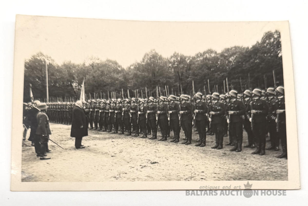 Fotogrāfija. Kārlis Ulmanis, Jānis Balodis armijas parādē. Standarta izmērs. Viena bilde ar defektu.