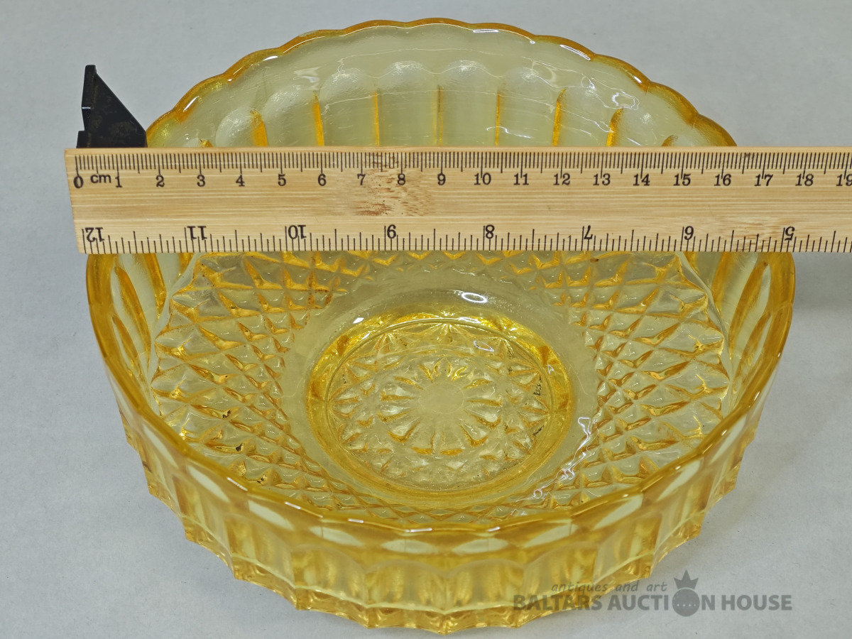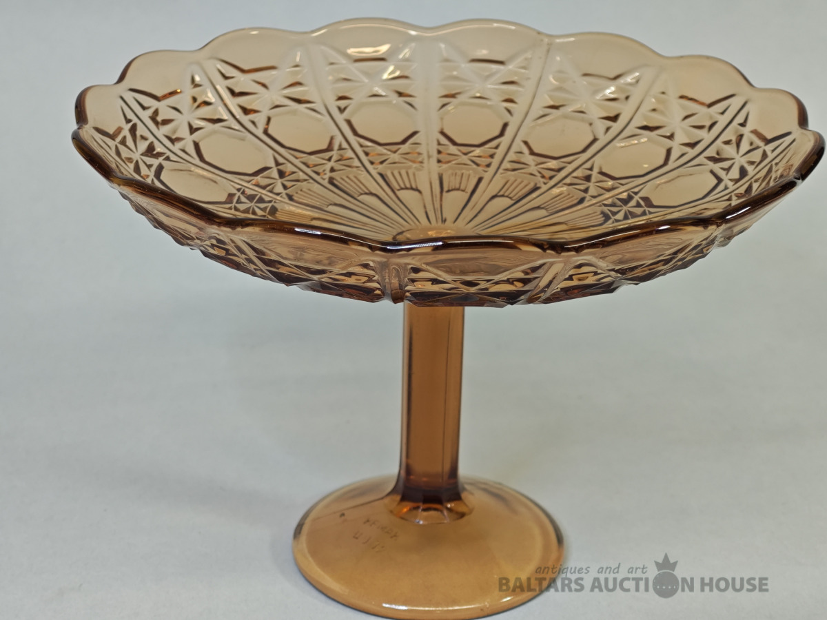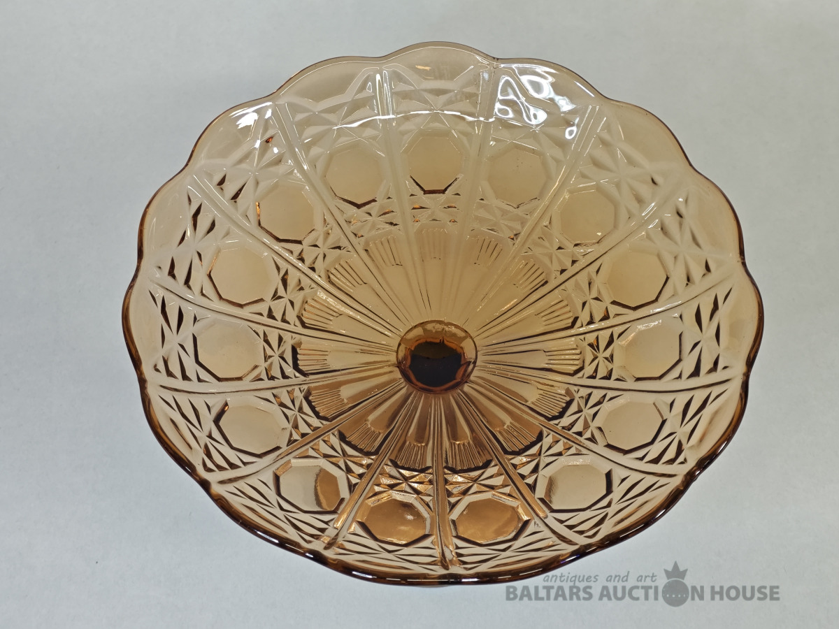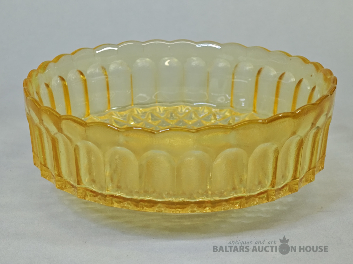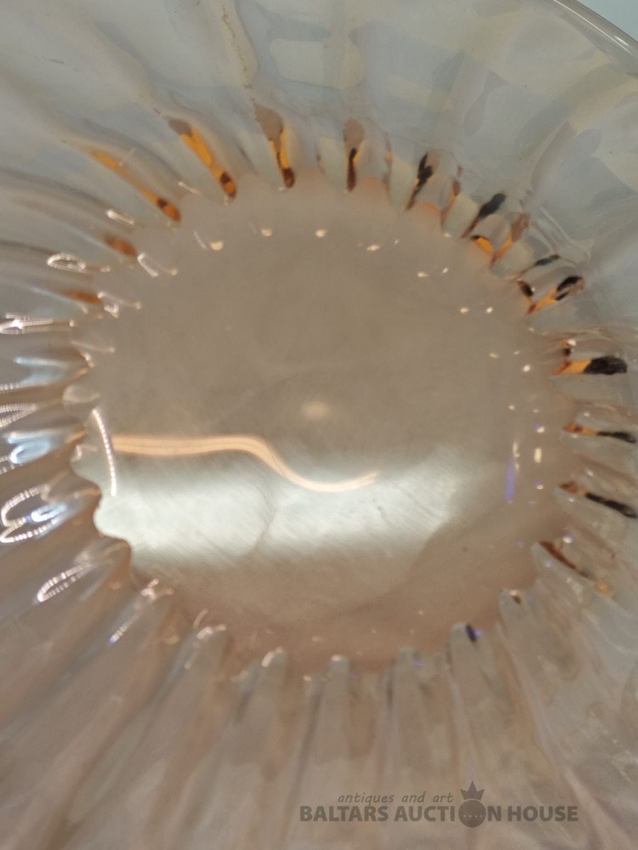 Šķīvis, vēcs dzintara krasa prēsets stikls ar burbuliem, bez defektiem