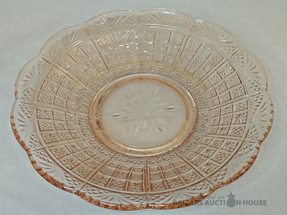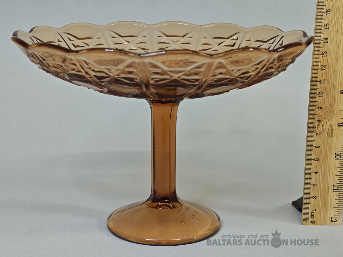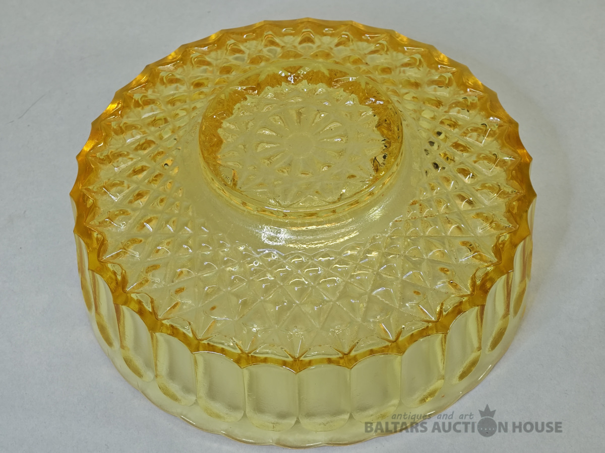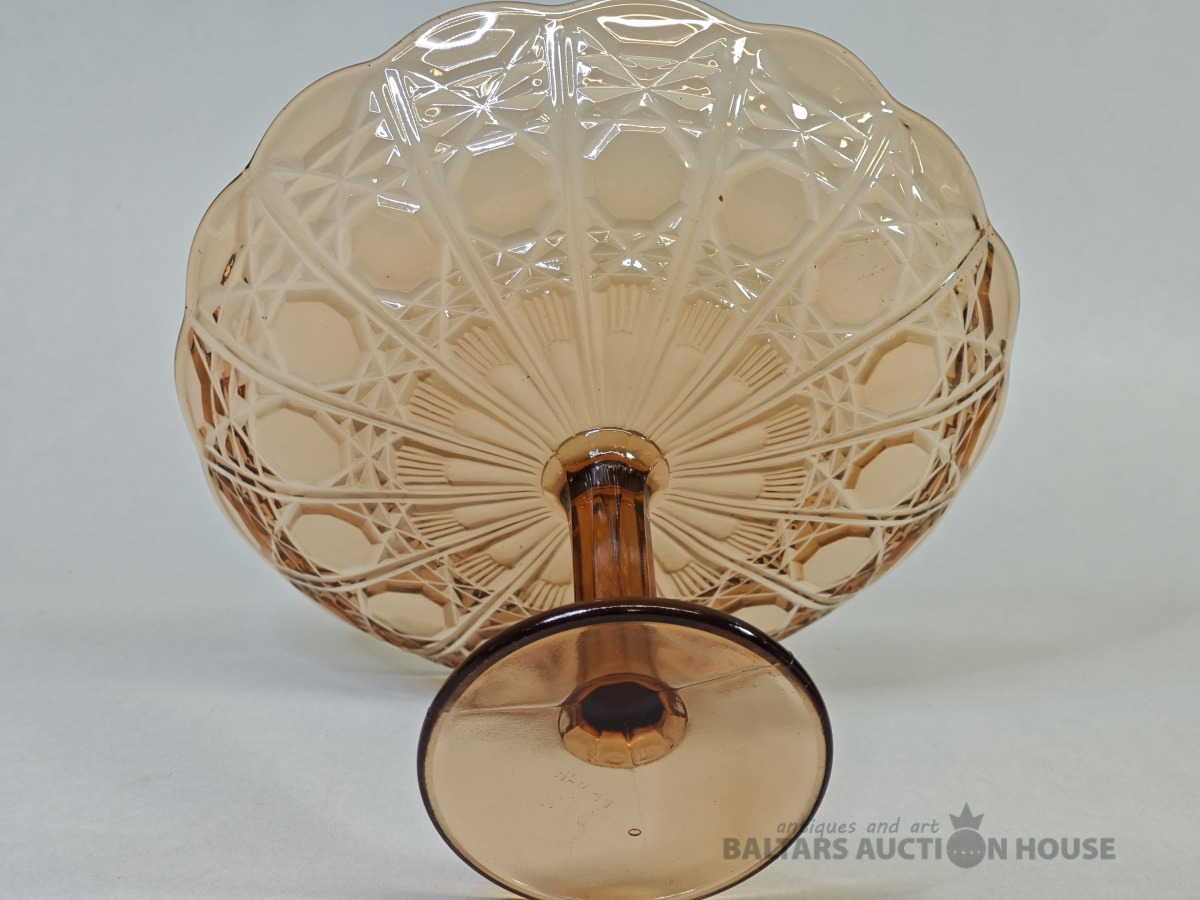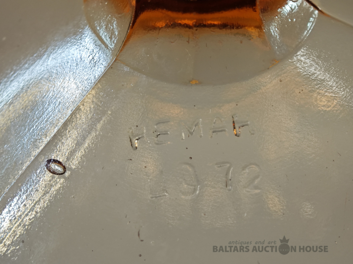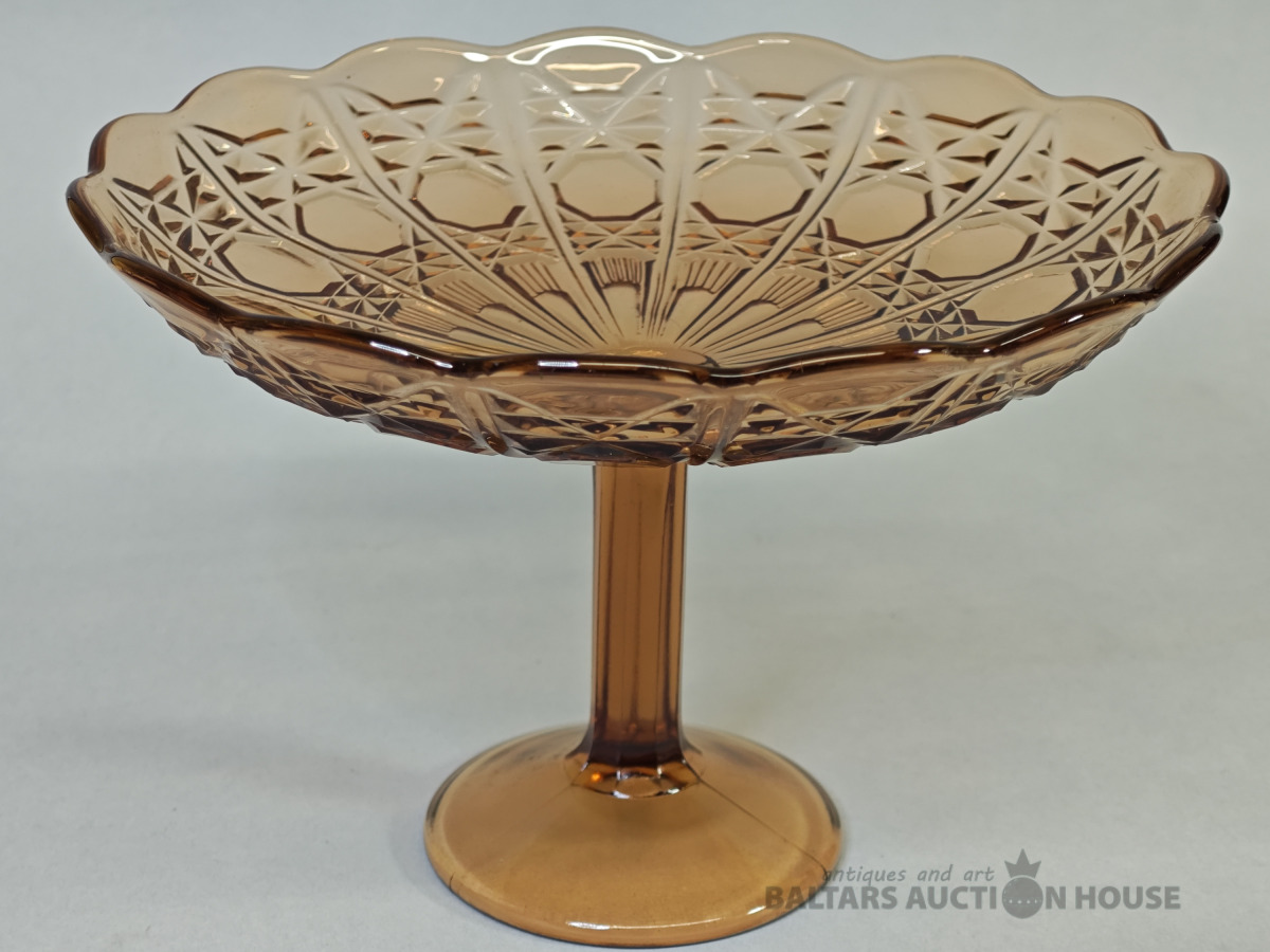 Šķīvis, vēcs dzintara krasa prēsets stikls ar burbuliem, bez defektiem