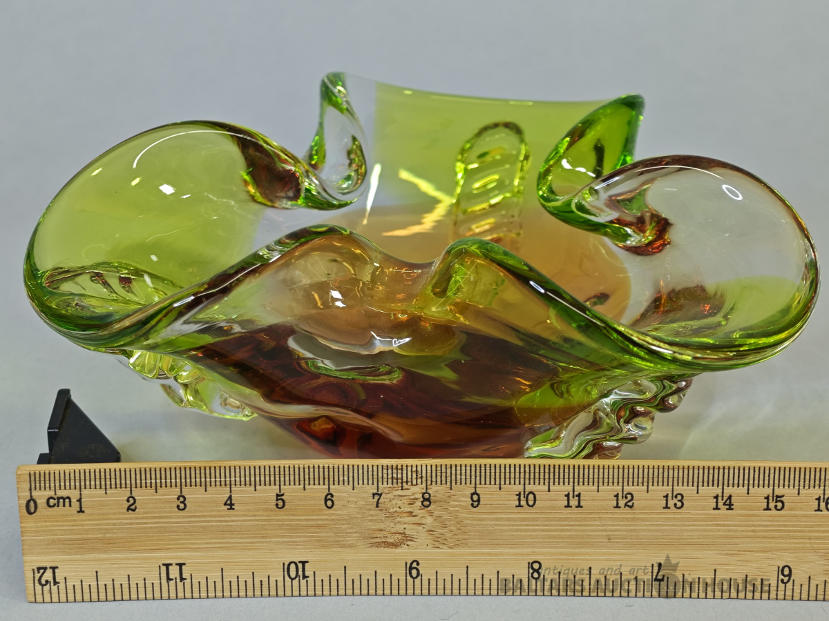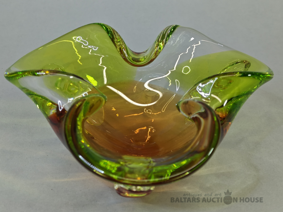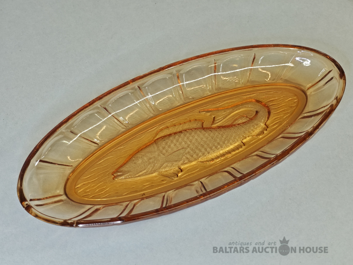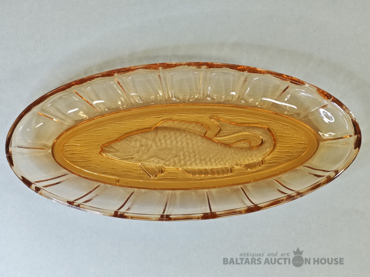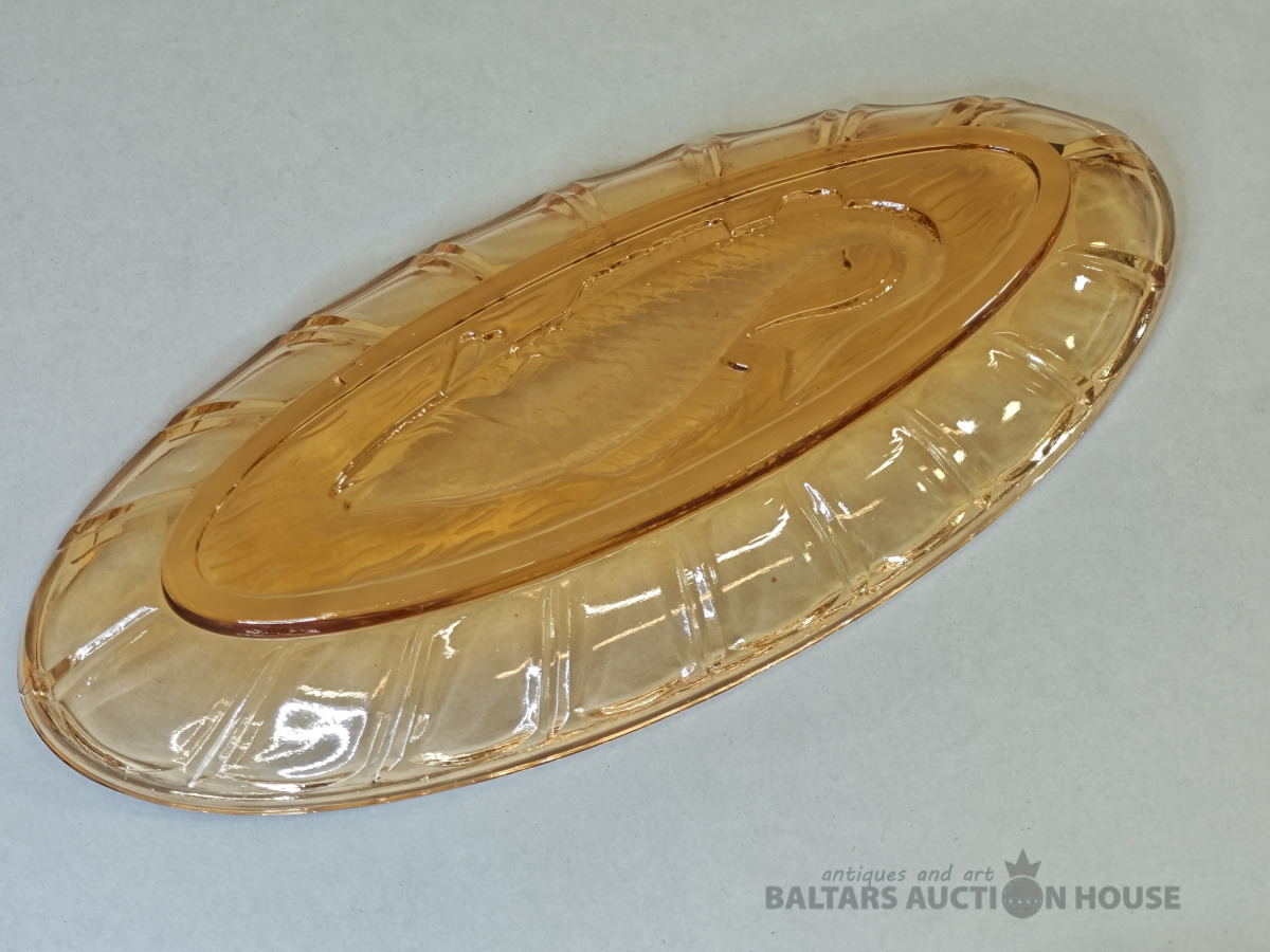 Šķīvis, vēcs dzintara krasa prēsets stikls ar burbuliem, bez defektiem