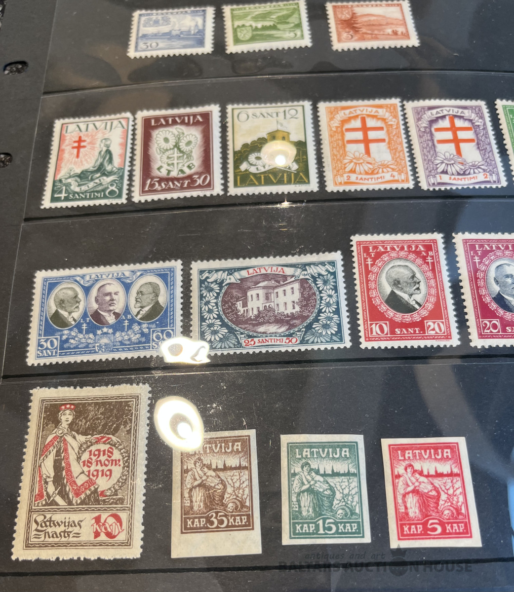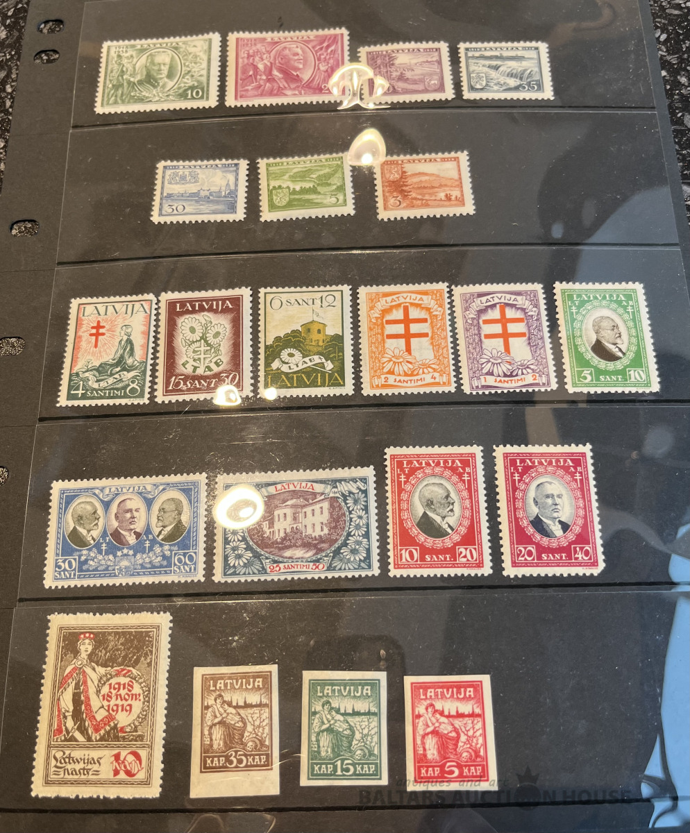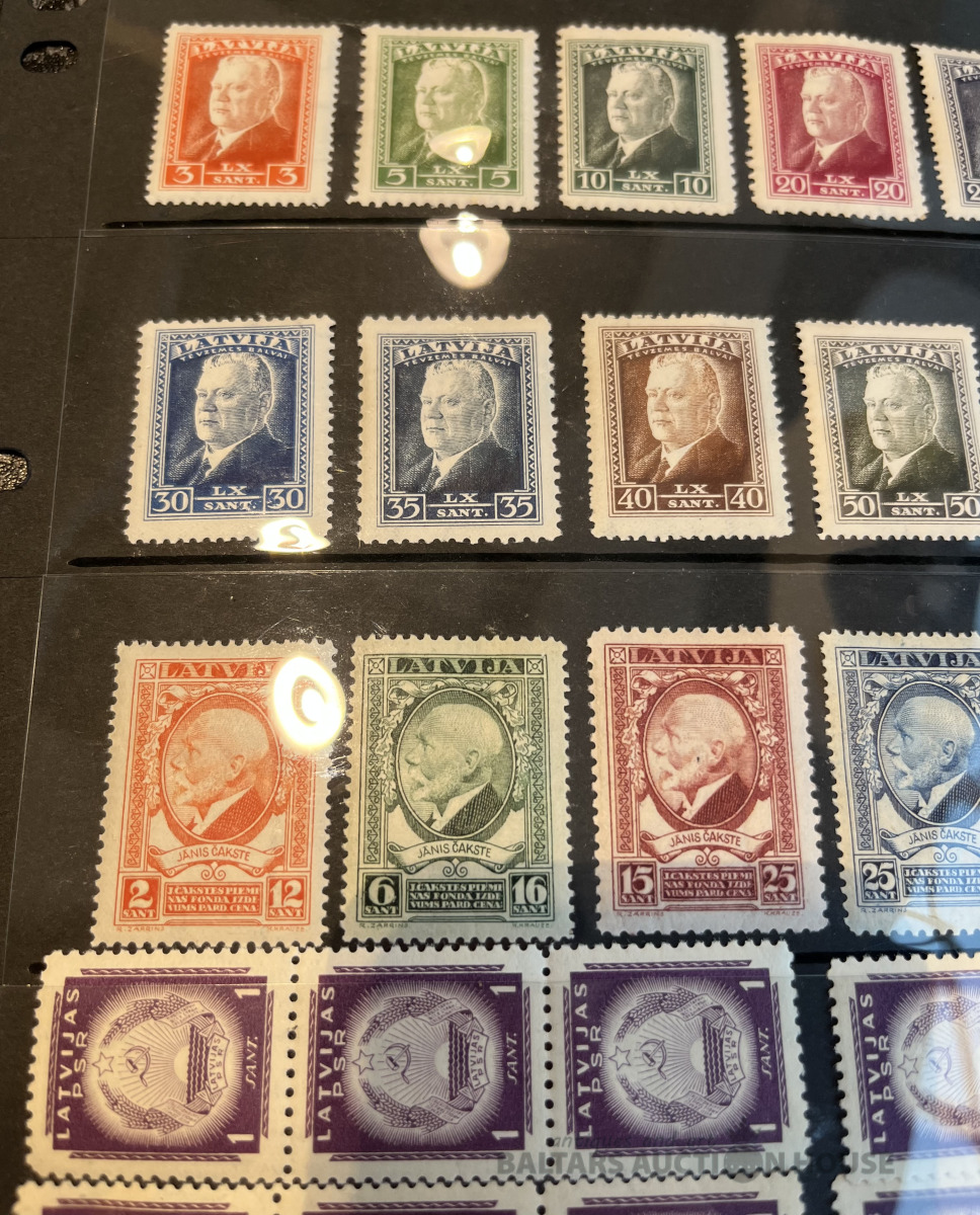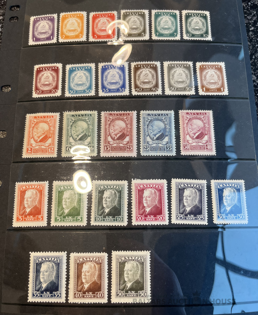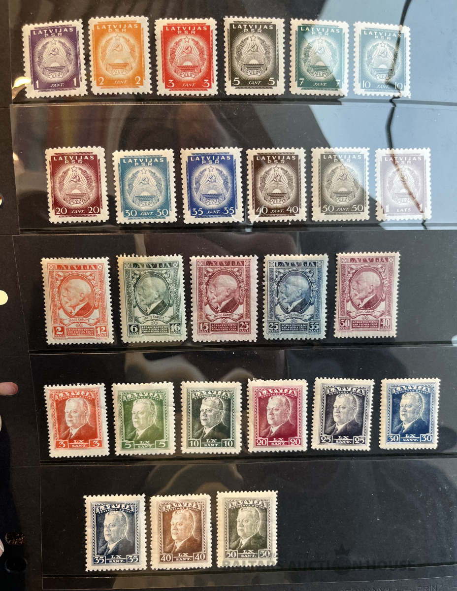 Latvija pirmskara pastmarkas un 1940. gada gērboni. Labā stāvoklī.