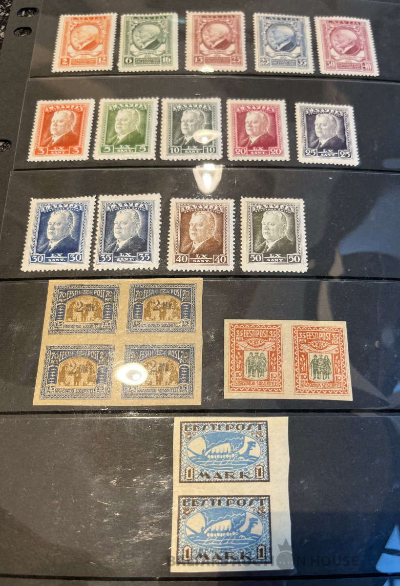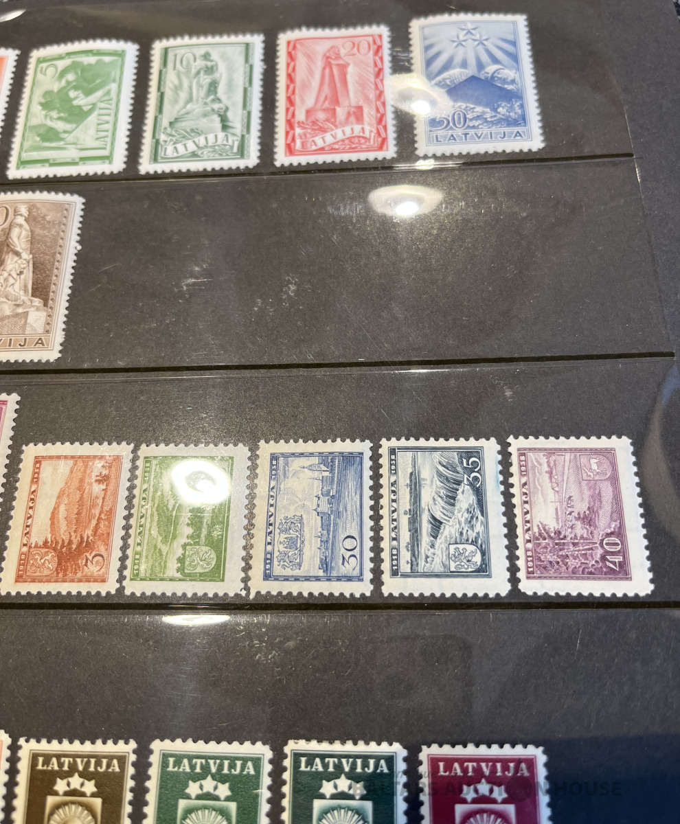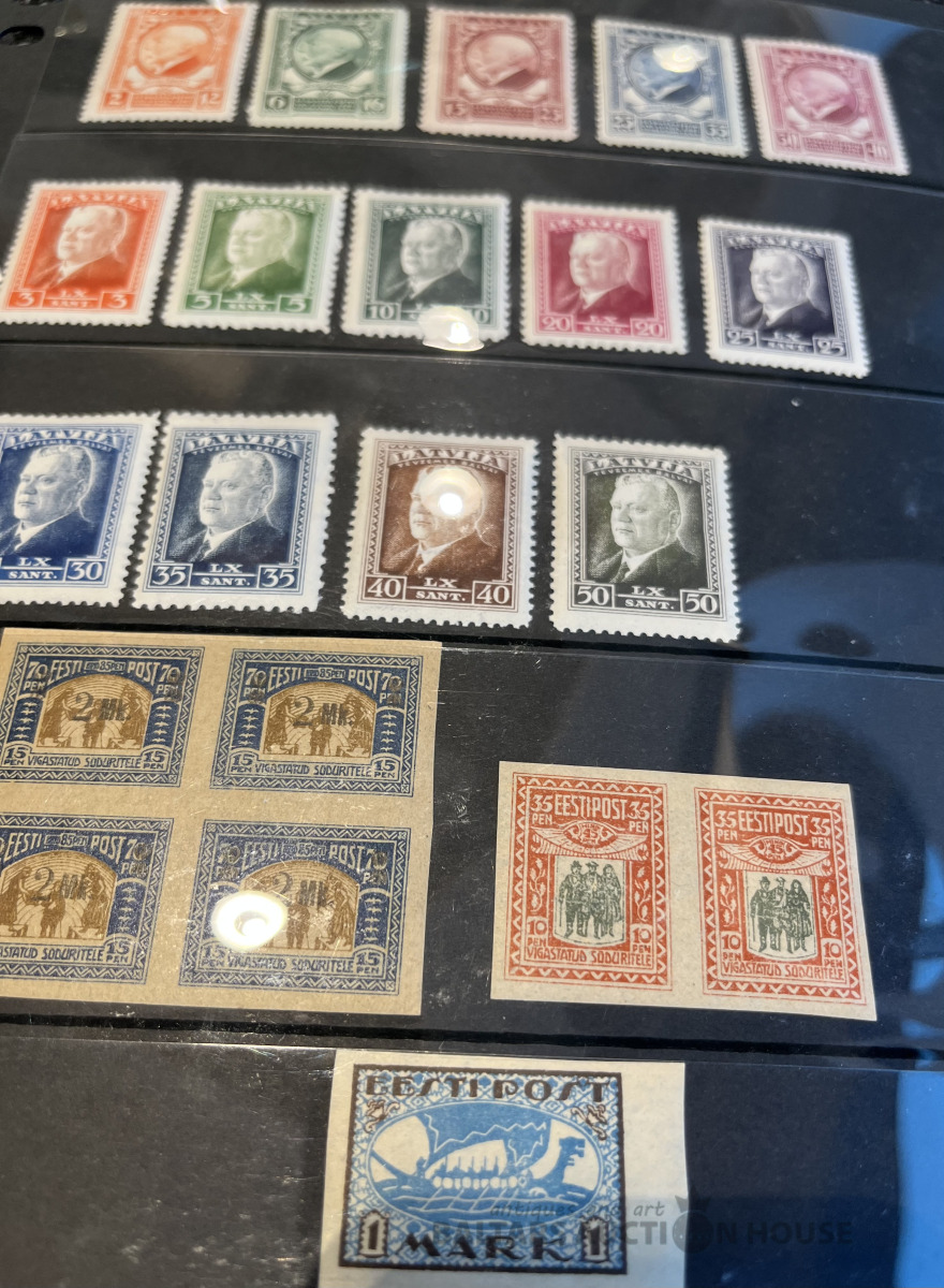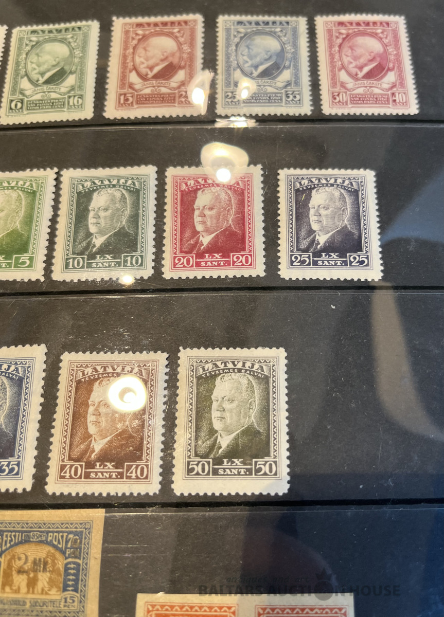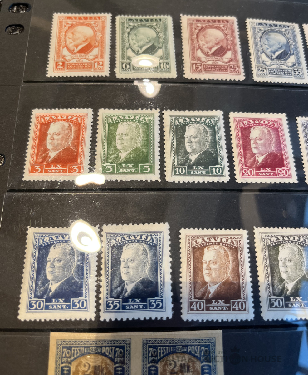 Latvija pirmskara pastmarkas un 1940. gada gērboni. Labā stāvoklī.