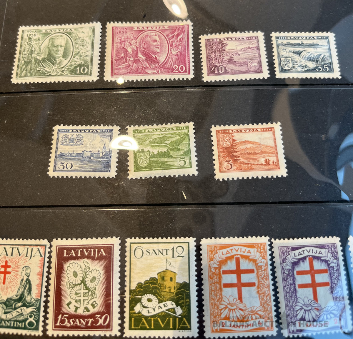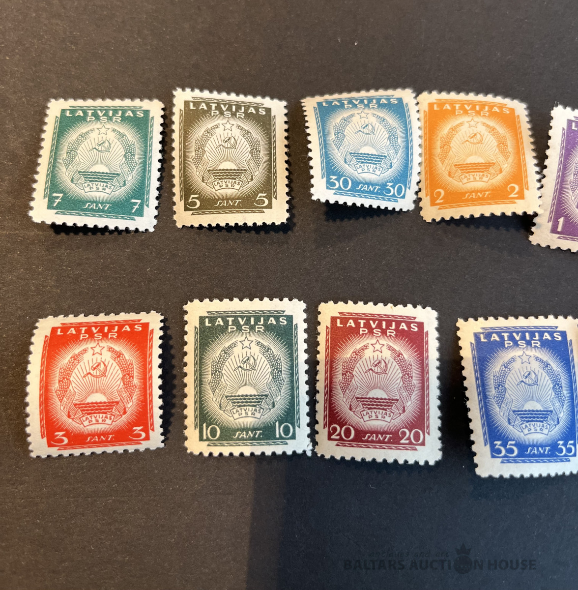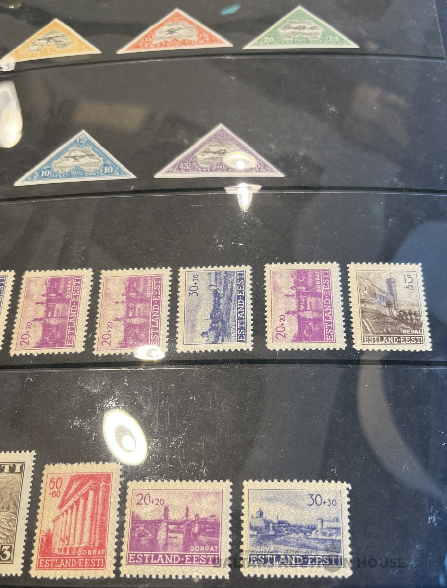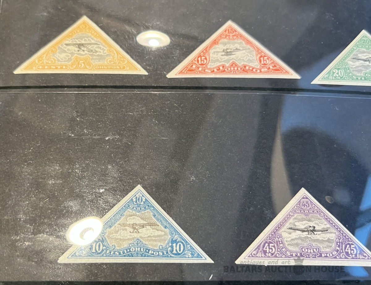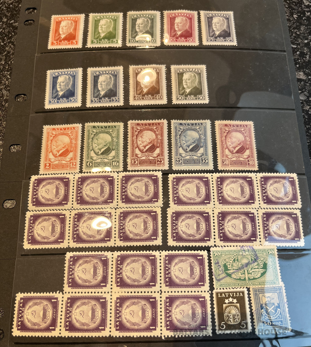 Latvija pirmskara pastmarkas un 1940. gada gērboni. Labā stāvoklī.