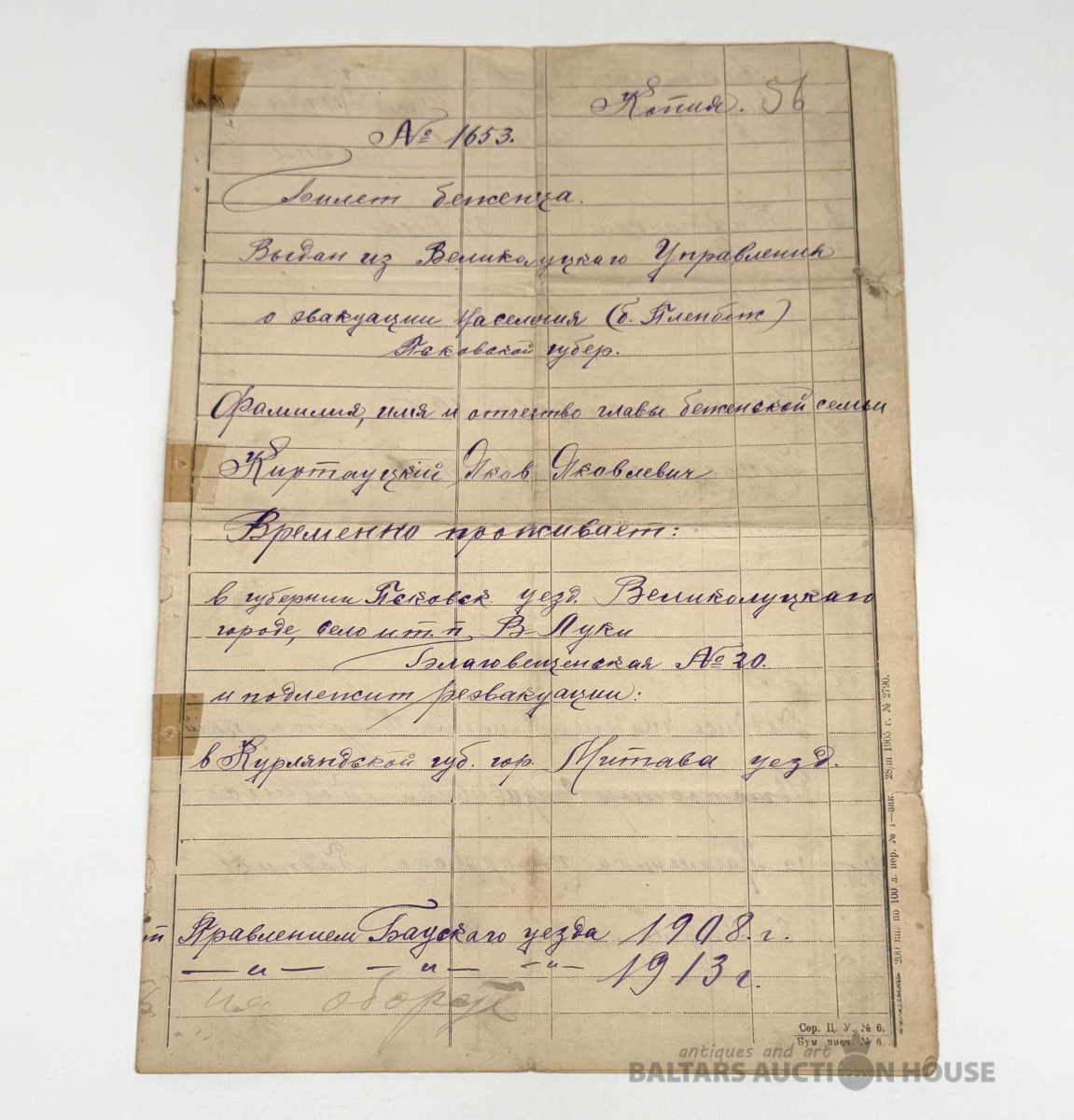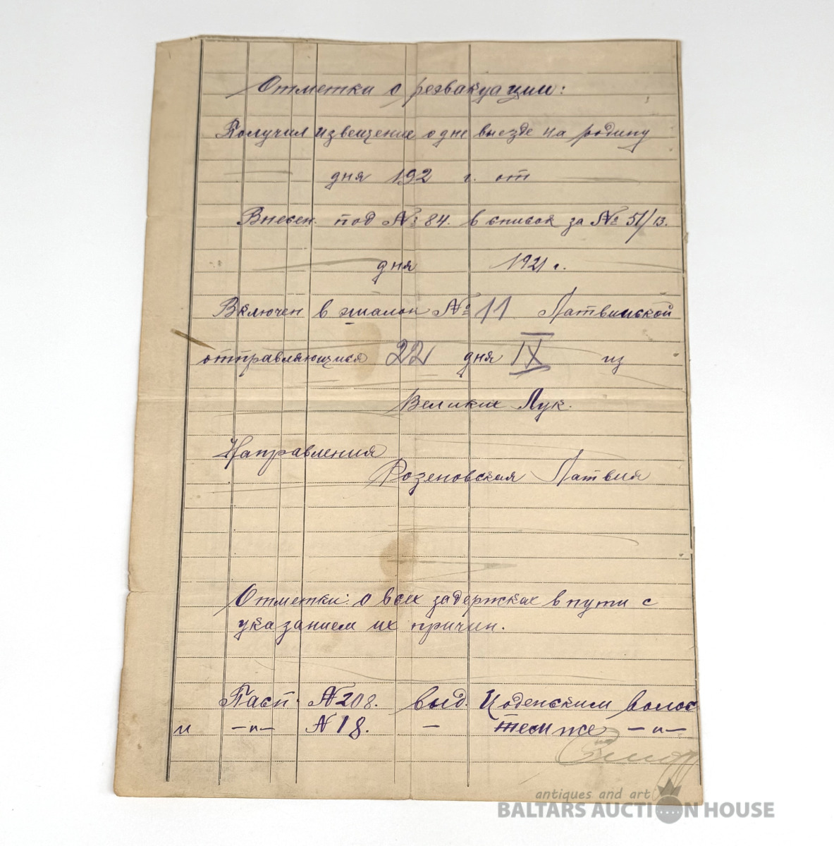 Kara bēgļa biļete lai atgrieztos Latvijā no Veļikije Luki 1921.
