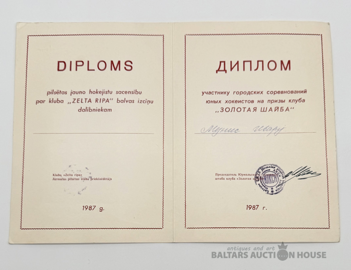 Rīgas Jūrmala. “Zelta Ripa” kluba diploms 1987.
