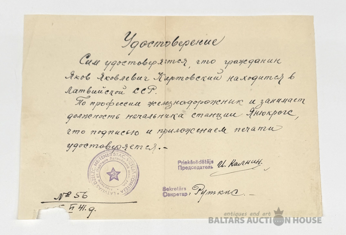 Dokuments. Latvijas Dzelzceļš. Stacija Jāņukrogs. 1941.