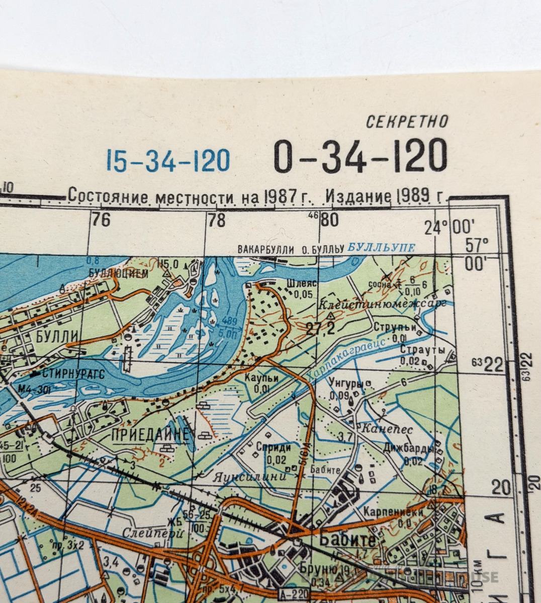 Rīgas Jūrmala. Ģenerālštāba karte 1989. 35x46 cm.