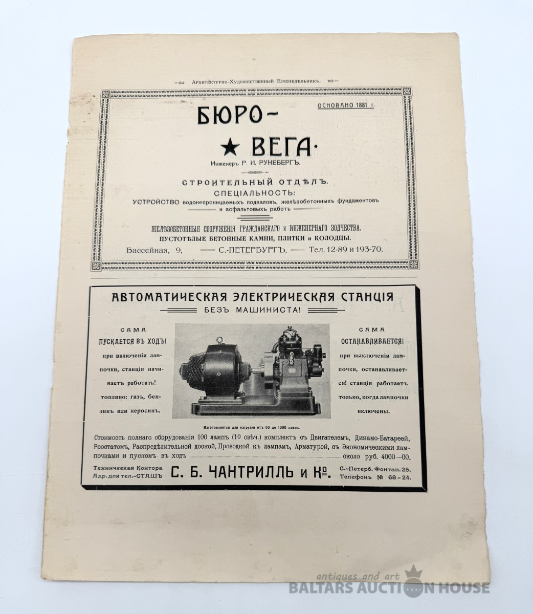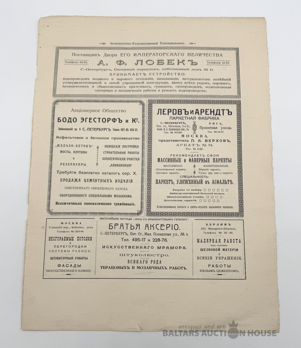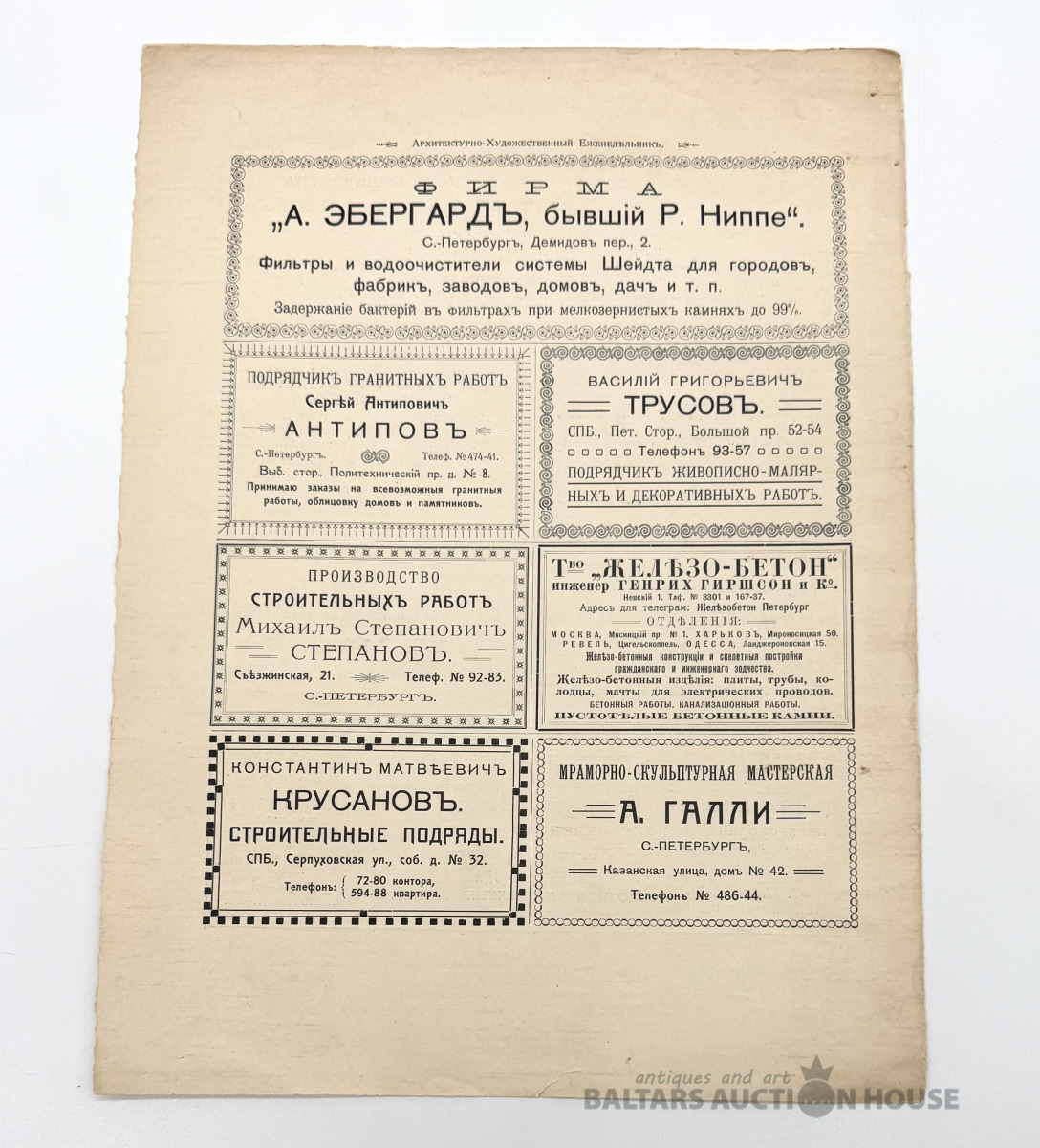 Lapa ar būvniecības reklāmām. Krievijas impērija. 25x34 cm.