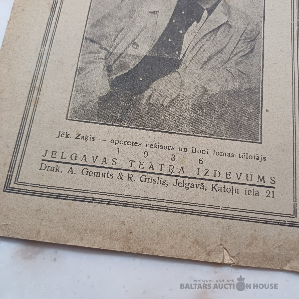 RETUMS! Jelgavas teātra izdevums – Silva, 1936. g. uz vāka foto – Jēk. Zaķis – operetes režisors un aktieris