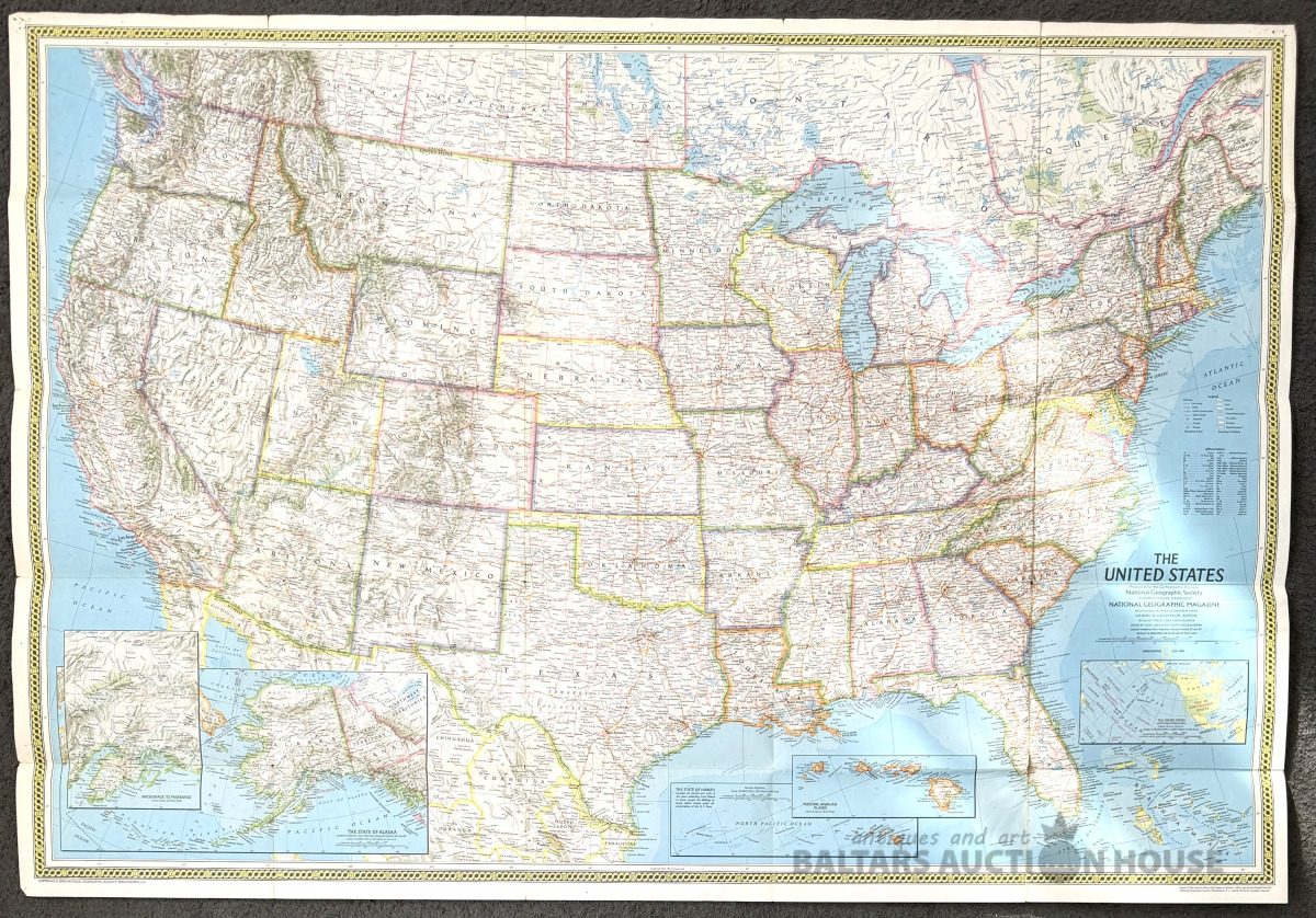Divpusējā ASV karte. 1976. 74x108 cm.