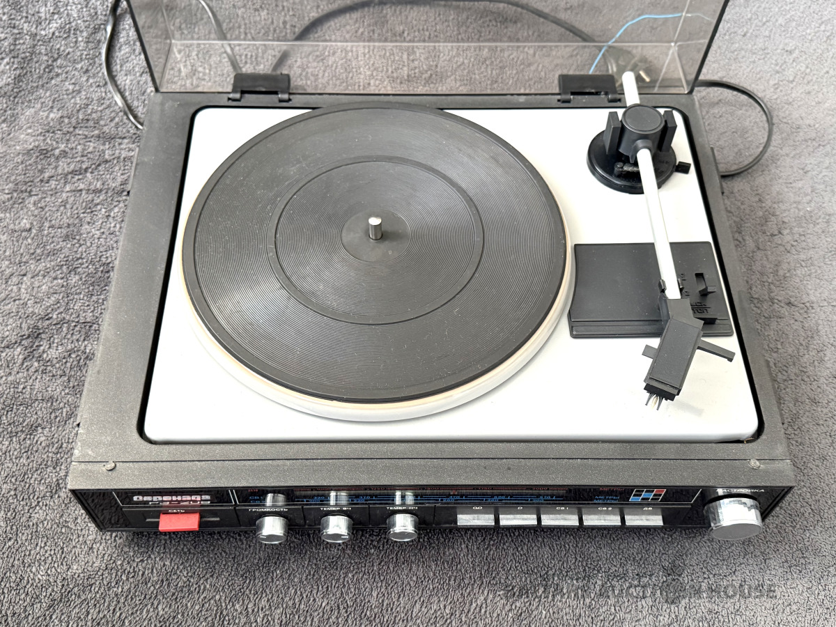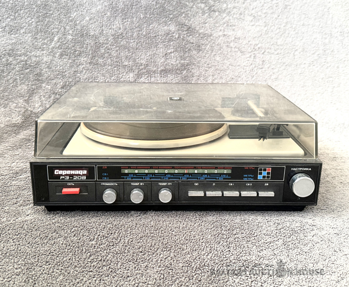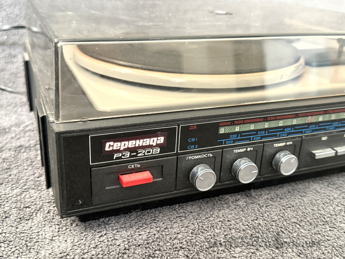 Plašu atskaņotājs/Radio “Серенада РЭ-209”. Slēdzās, plate griežās, adata vietā. Pārējo funkciju darba stāvoklis nav zināms.