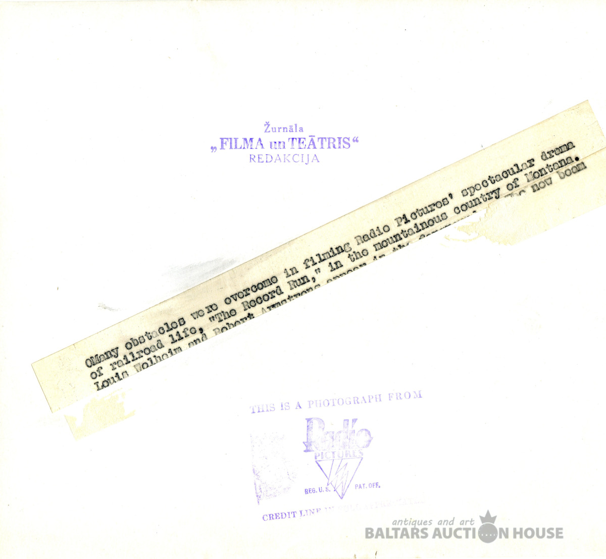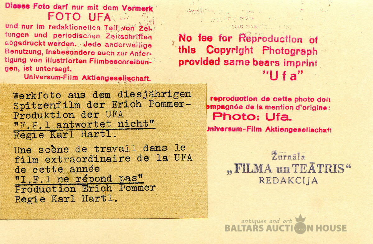 Retu teātra un kino priekšmetu cienītājiem. Foto iepakojums žurnālam "FILMA UN TEATRIS", 1932., Diemžēl aploksne ir slikti saglabājusies.