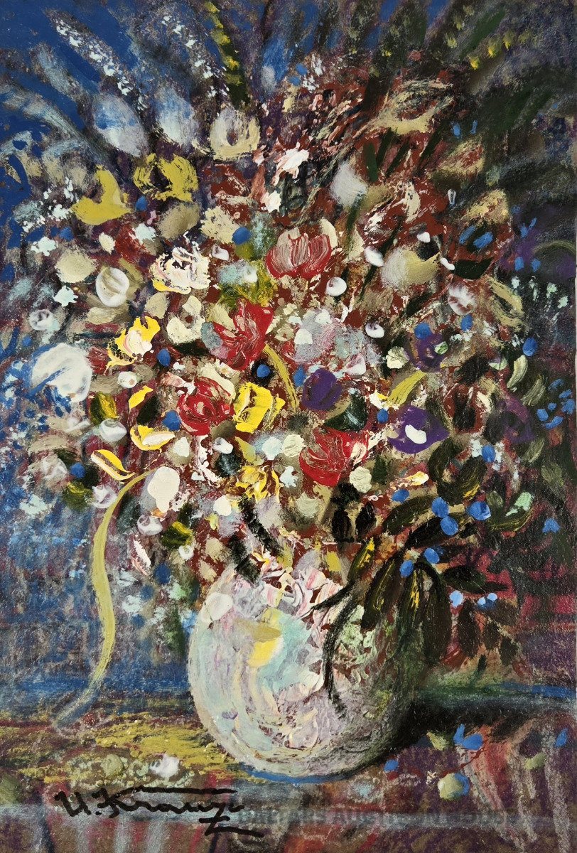 Uldis Krauze (1958). ZIEDI. Kartons, jaukta tehnika. 32x23 cm