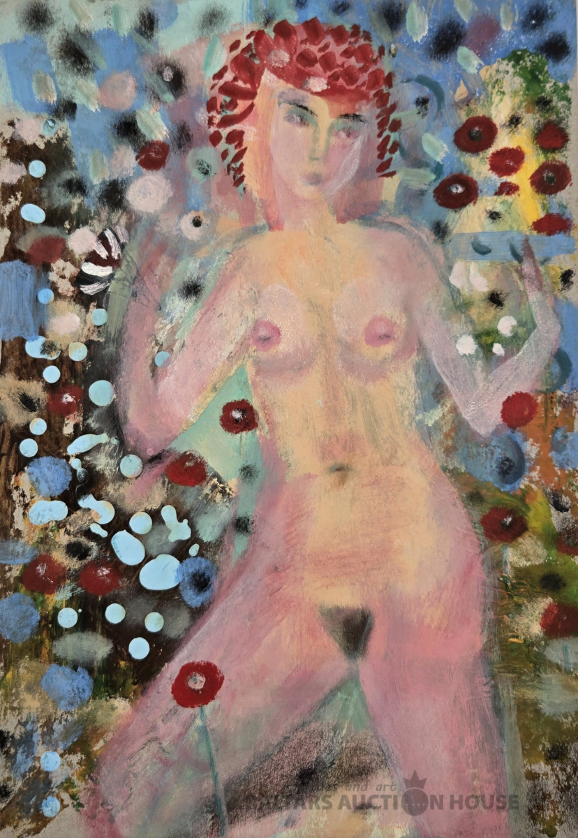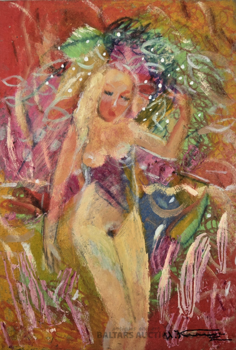 Uldis Krauze (1958). KAILA SIEVIETE. Kartons, jaukta tehnika. 32,5x23,5 cm