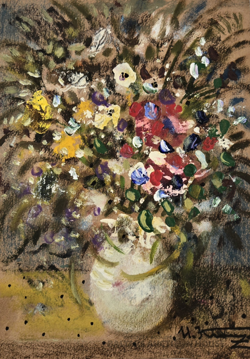 Uldis Krauze (1958). ZIEDI. Kartons, jaukta tehnika. 31x23 cm
