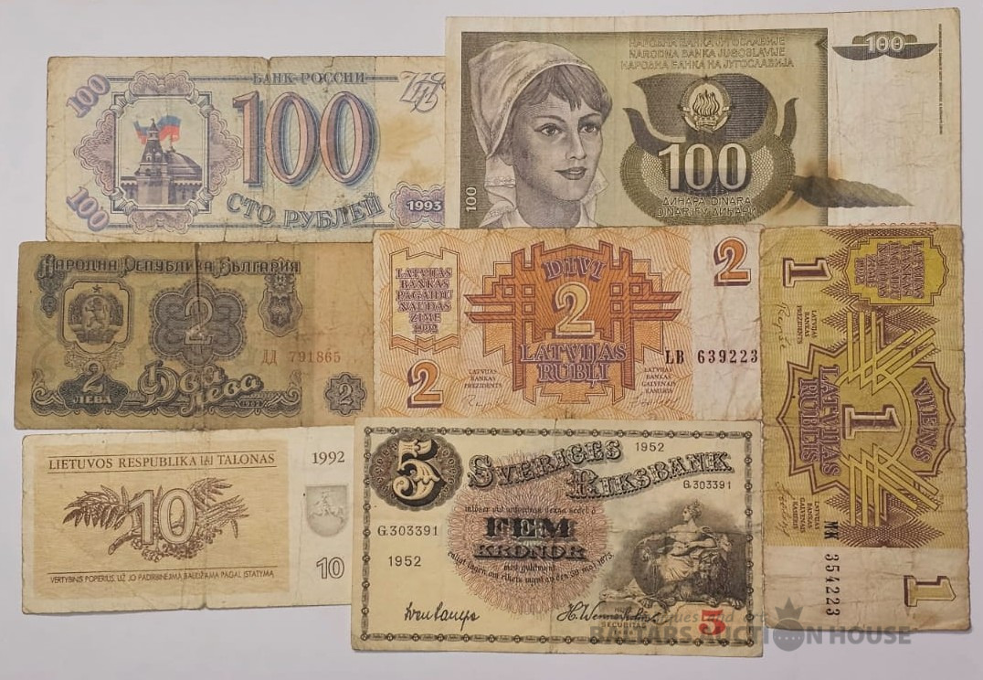 Banknotes Latvija, Zviedrija, Lietuva un citas, 7 gab.