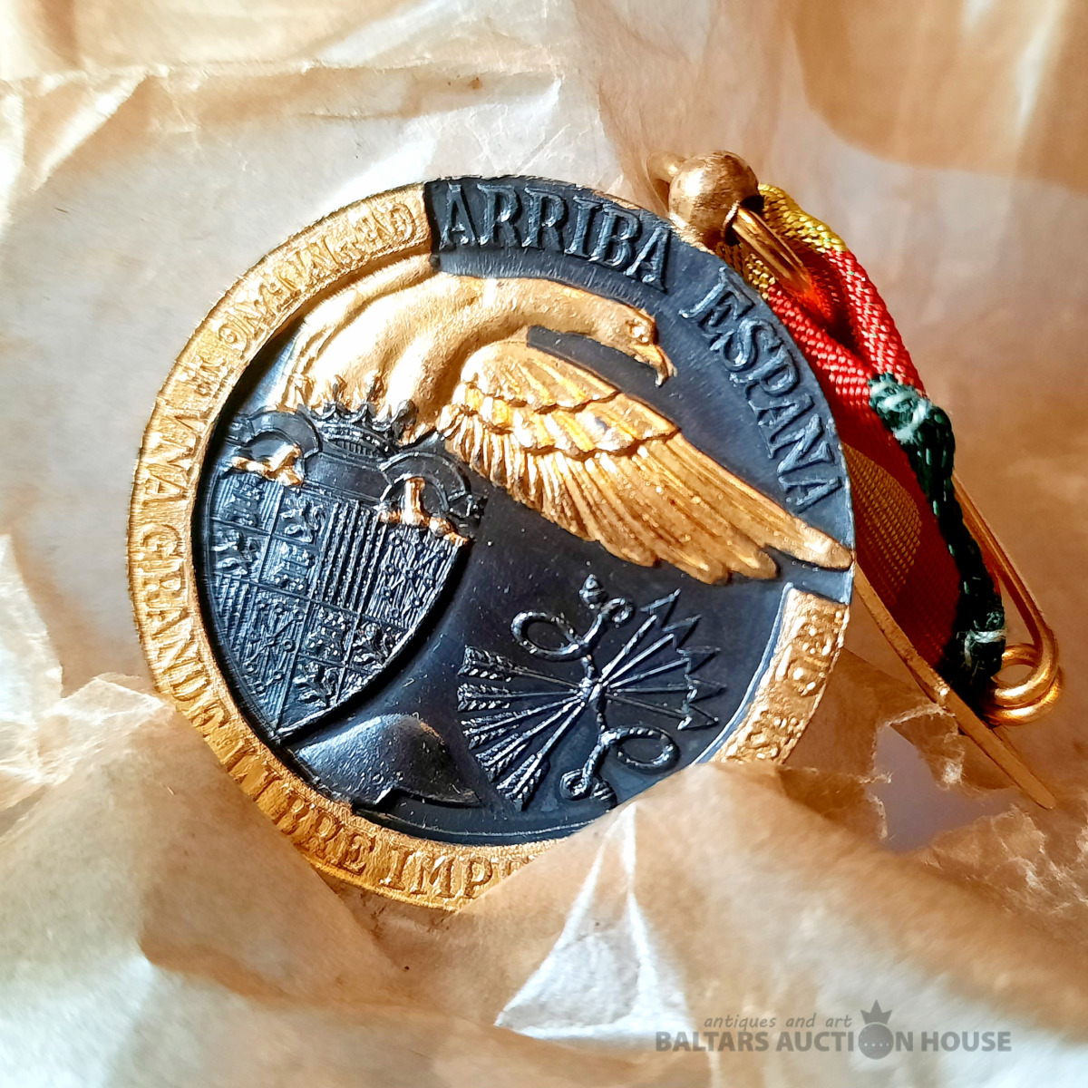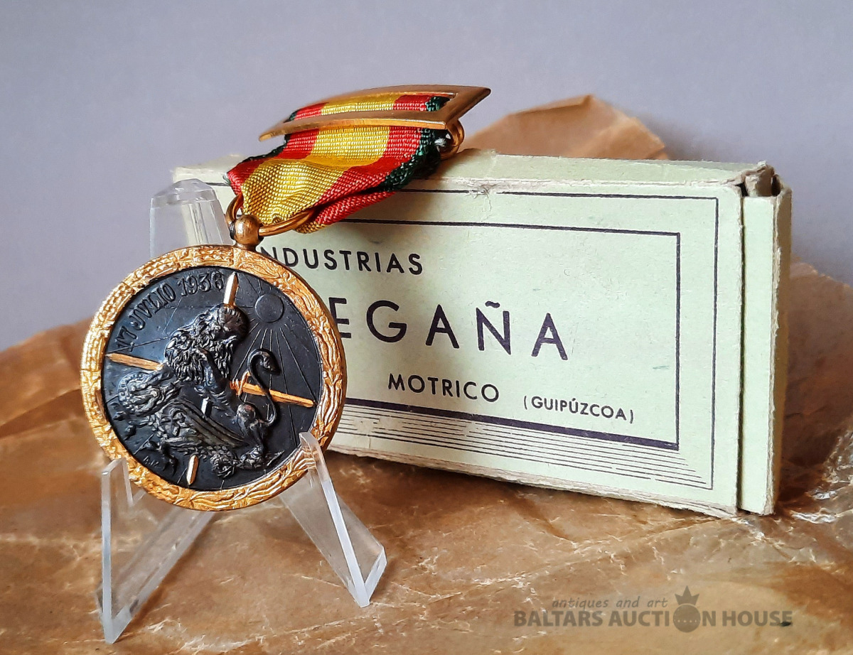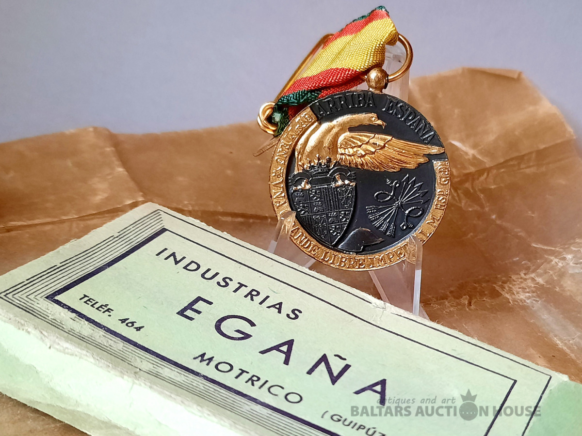 Spānijas kampaņas medaļa (Medalla de la Campaña), kas tiek piešķirta par dalību Spānijas pilsoņu karā. Mērķis: Medaļu izveidoja frankistu valdība, lai apbalvotu karavīrus, kuri piedalījās militārajās operācijās no 1936. līdz 1939. gadam. Ražotājs: Uz kastītes norādīts ražotājs kā Industrias Egaña, kas atrodas Mutriku, Gipuskoā. Dizains: Medaļa ir izgatavota no bronzas ar melnu un apzeltītu apdari, attēlojot lauvu, kas simbolizē Spāniju, uzvarot pūķi, un uz tās ir uzraksts "1936. gada 17. jūlijs".