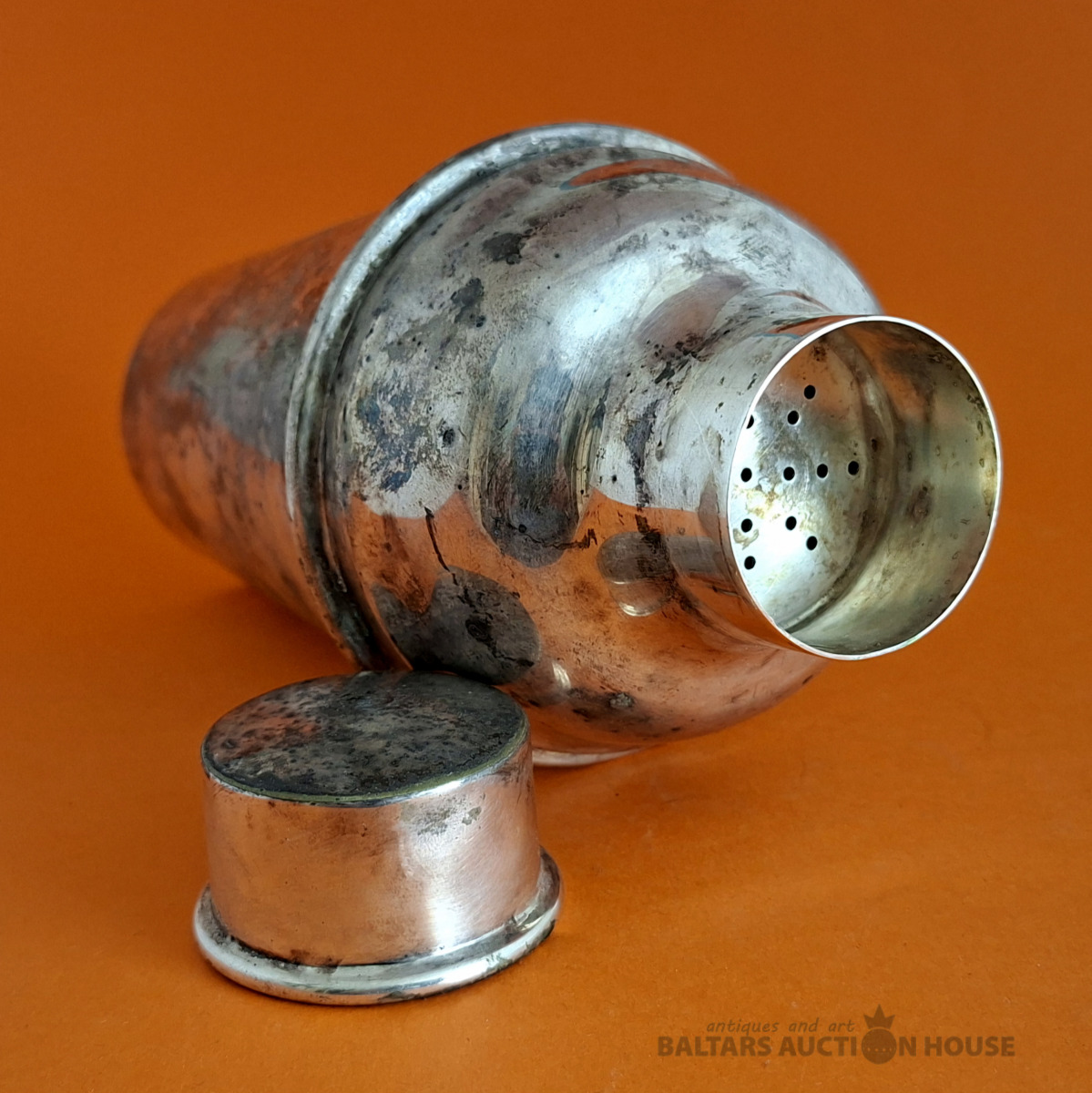 Antīks sudrabots tērauda kokteiļu kratītājs EPNS, ap 1950. gadu, Eiropa. Labā stāvoklī, bez bojājumiem. Patina.