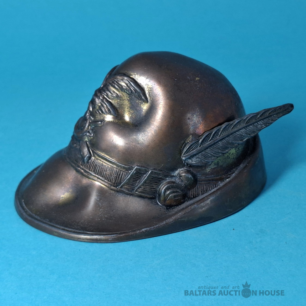 Miniatūra Alpini cepures kopija ar raksturīgu spalvu. 10 x 8,5 x 6 cm