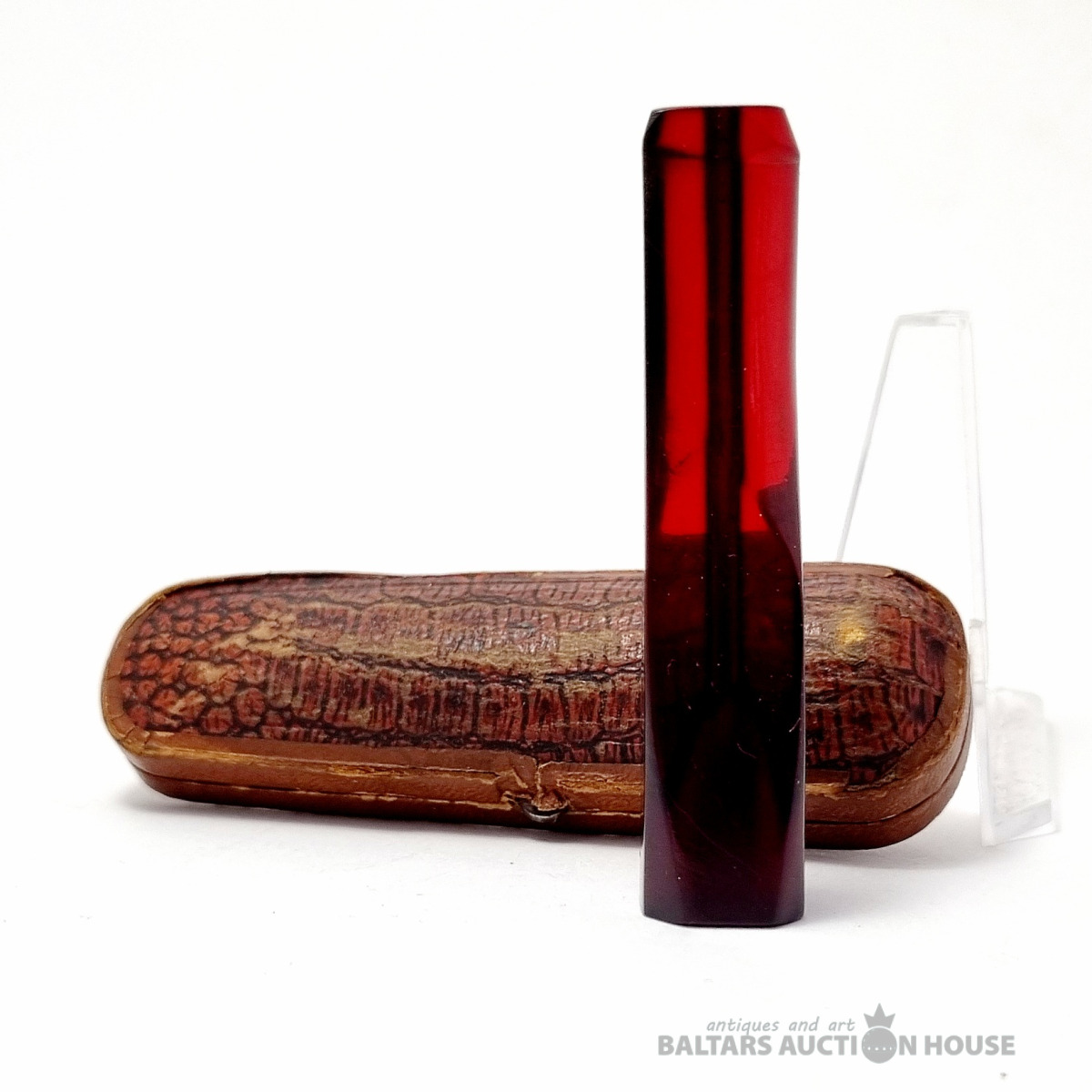 Mutes uzgalis, kopējais svars 9,8 g, izstrādājuma izmērs 7,2 cm, presēts dzintars. Stāvoklis parādīts fotoattēlā.