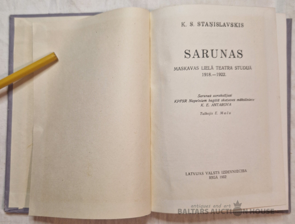 2 grāmatas. 1) M.N. Jermolova (Atmiņas). T.Ščepkina- Kupernika. Rīga, 1951. gads; 2) Sarunas. Maskavas Lielā teātra studijā 1918.-1922. K. Staņislavskis. Rīga, 1952. gads