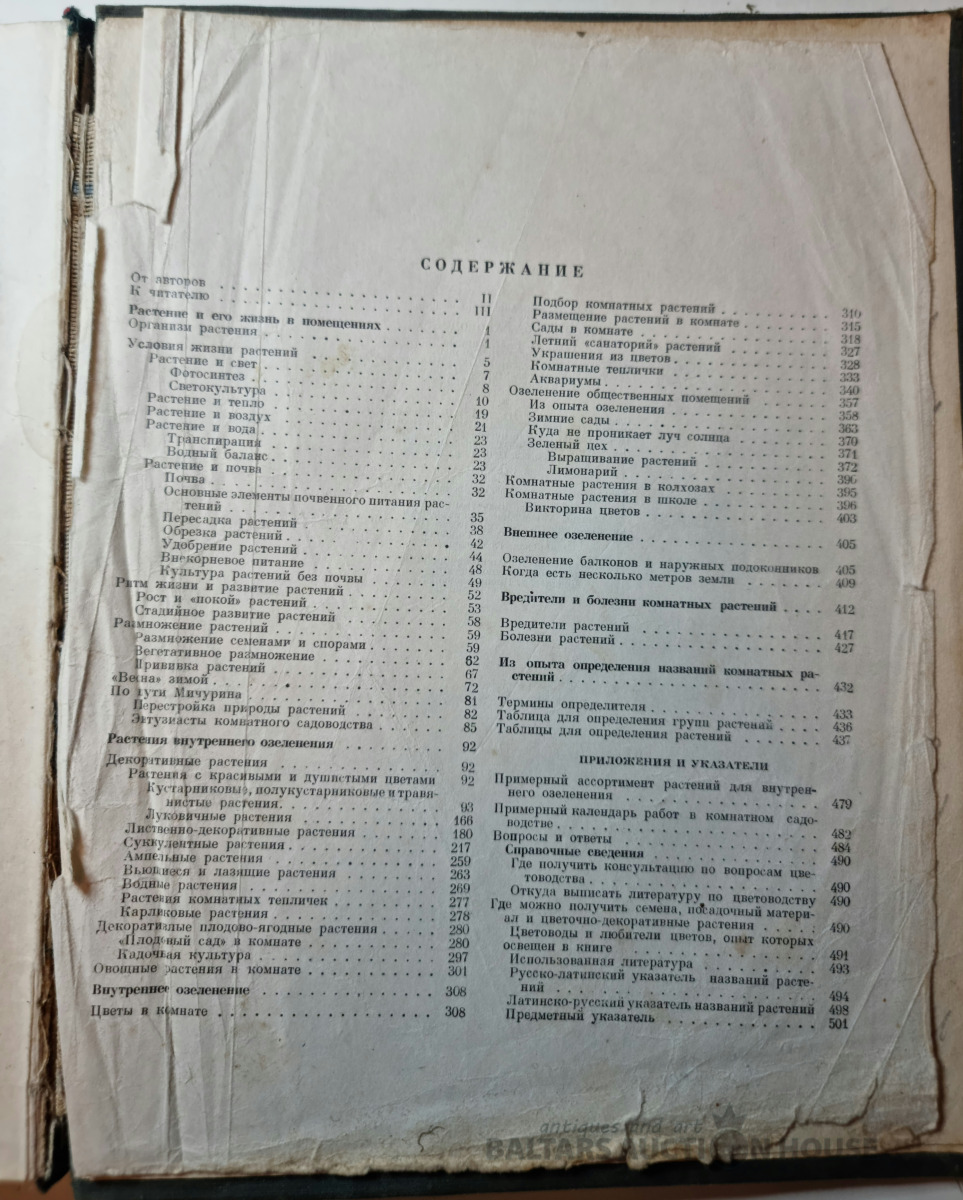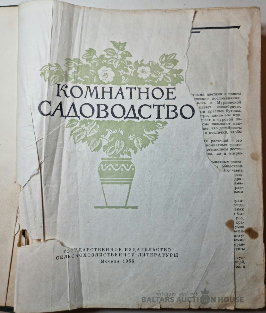 "Iekštelpu dārzkopība" Maskava 1956.g. Bojāta titullapa un satura rādītājs!