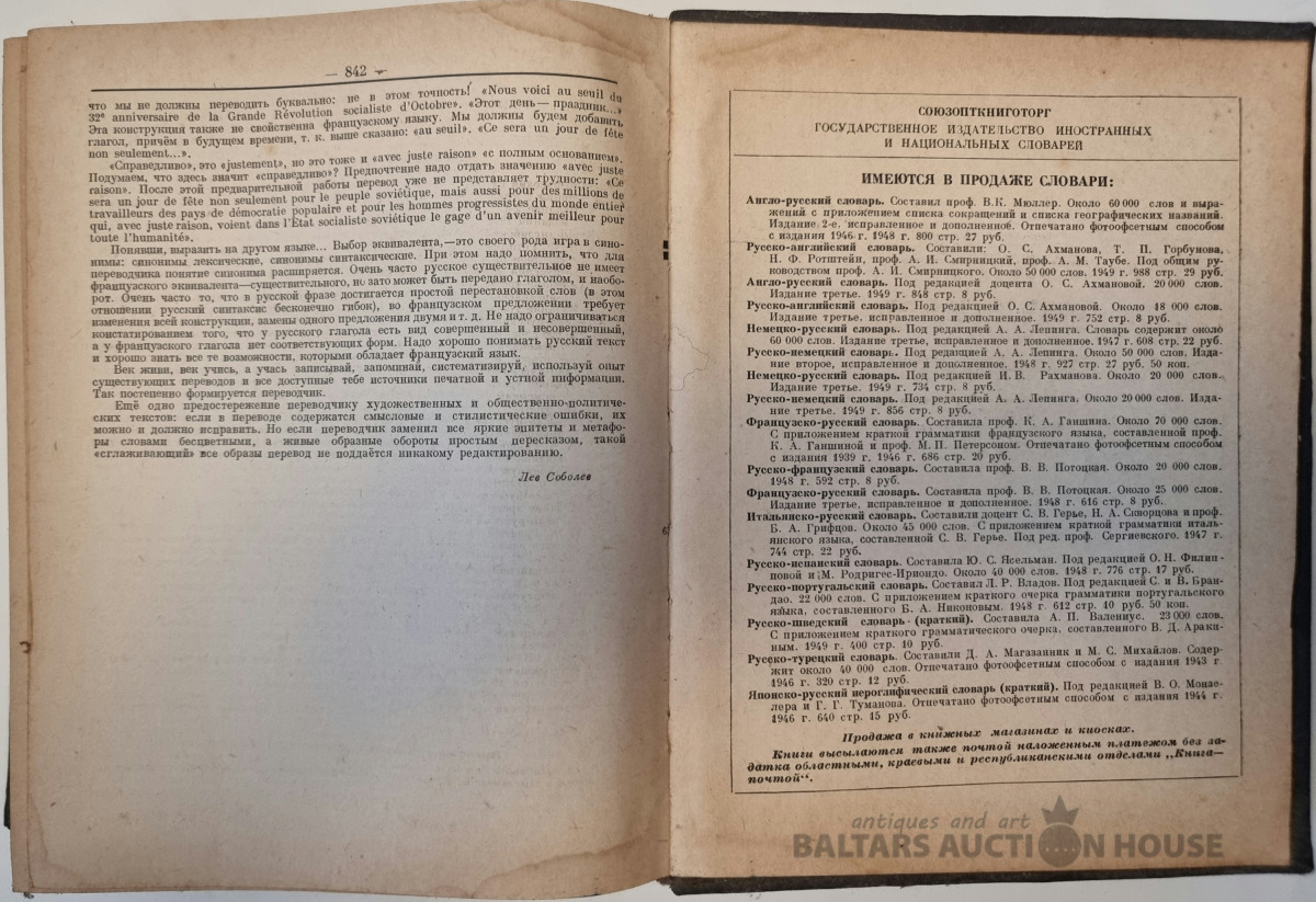 Krievu - Franču vārdnīca Maskavā 1950.g.
